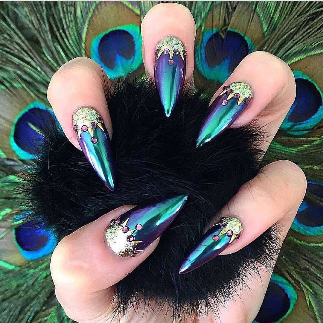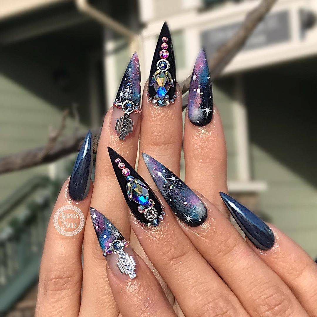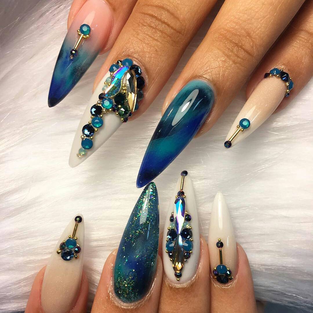 Острые ногти со стразами 2020: идеи эффектного дизайна ногтей