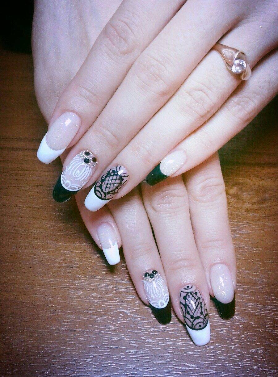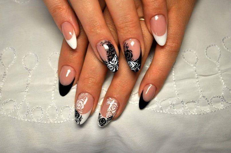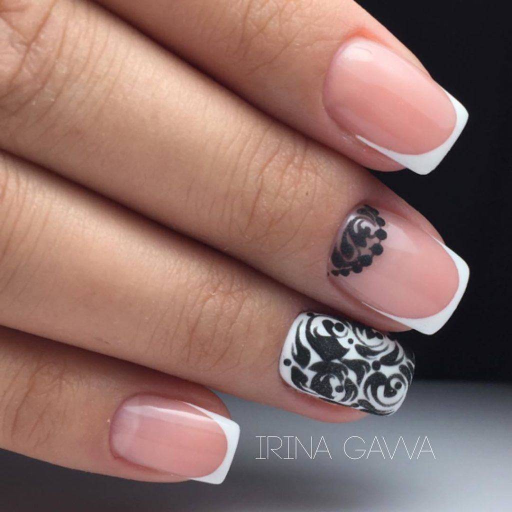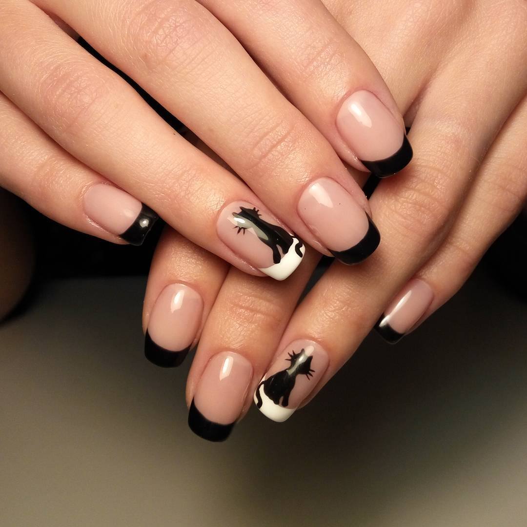 Данный маникюр можно смело использовать для мероприятия любой тематики, а также повседневного дизайна ногтей. Он смотрится достаточно скромно, строго и сдержанно. Если хочется разбавить умеренный черно-белый френч, можно использовать множество методов, но самый привлекательный и шикарный из них – это рисунок