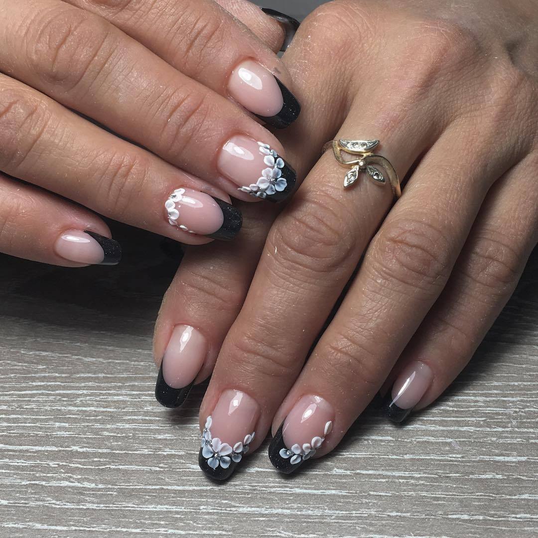 Отличным дополнением французского маникюра всегда считался цветочный рисунок