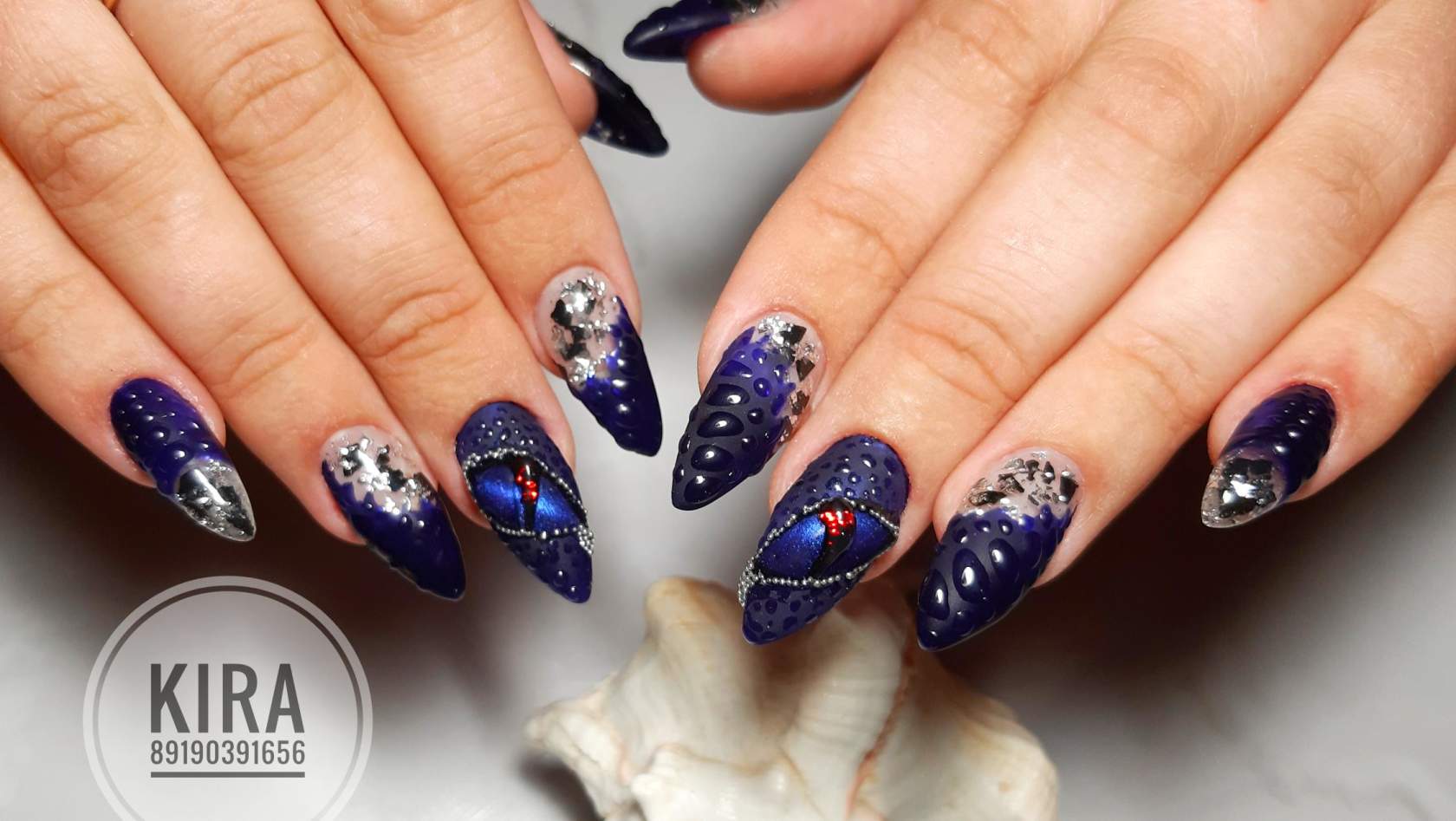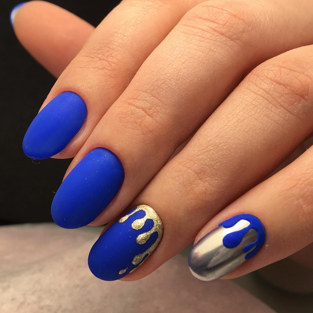 Чтобы почувствовать себя особенной женщиной, мастера маникюра могут предложить вам огромное обилие дизайнерских nаil-решений. Длинные ногти придадут вам стильный и утонченный образ. Для длинных ногтей миндалевидной формы отличным вариантом будет стильный синий френч. Френч из глиттера также смотрится необычно и ярко.