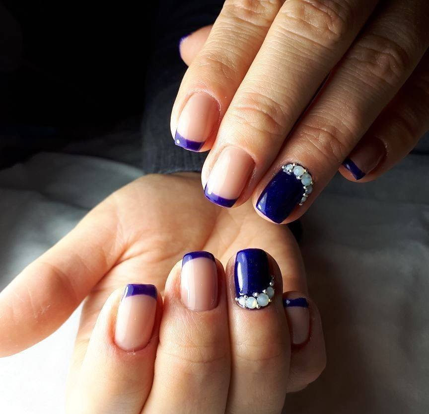 Стильный синий френч – одна из альтернатив другим цветам, при этом для многих он весьма неоднозначный. Если вы отдаете предпочтение темным оттенкам, синий цвет будет удостоен вашего внимания. Выбрав синий французский маникюр, вы увидите на своих ноготках оригинальный и интересный дизайн, который не останется без внимания окружающих!