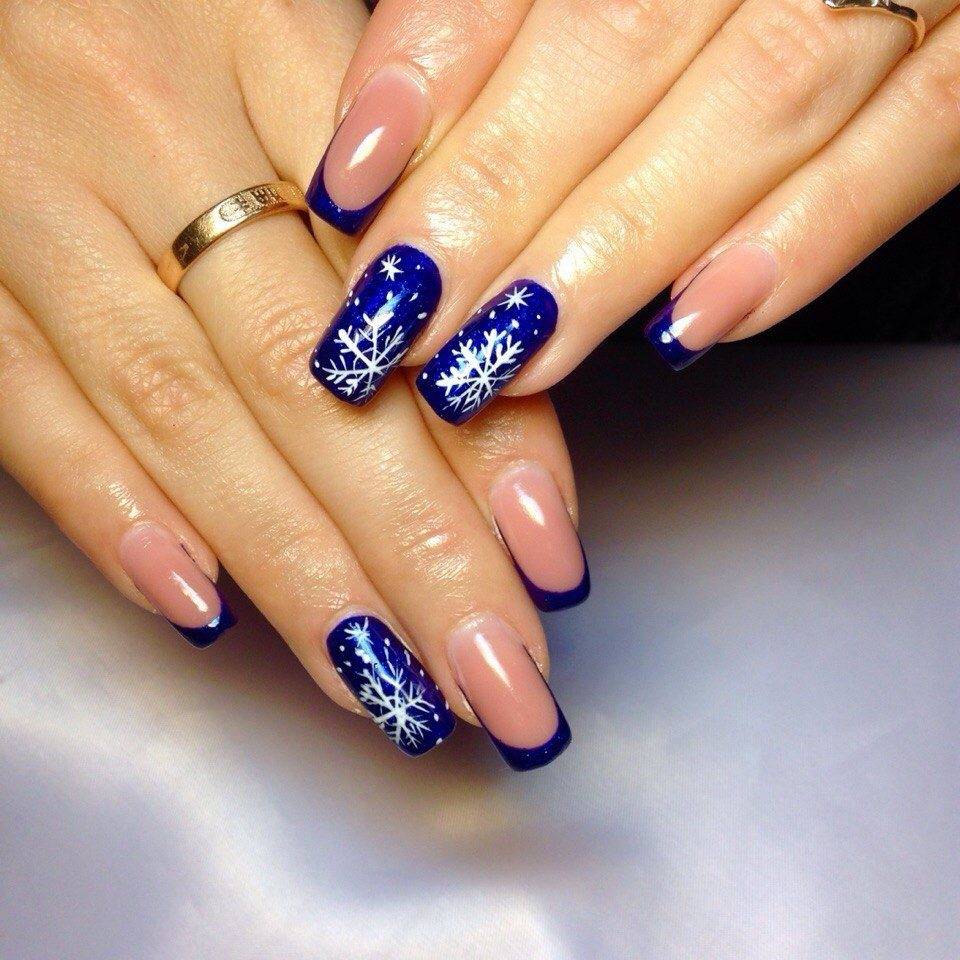В преддверии Нового года френч очень часто украшают тематическим рисунком. Это могут быть снежинки, сказочные персонажи, подарки или что-то другое