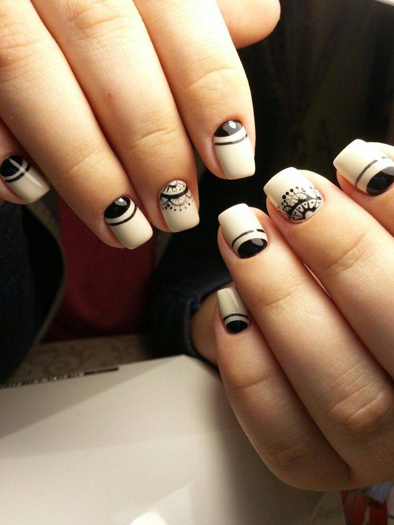 Как известно, мода не стоит на месте и с каждым днем возникают все новые идеи выполнения черно-белого маникюра. Ведь это очень востребованный и всеми любимый дизайн маникюра для многих девушек. Не секрет, что в последнее время в мире нейл-арта широко пользуется популярностью прозрачное пространство, вследствие этого и появилась одна новоиспеченная идея. Белая основа должна выполняться примерно от середины ноготка и до конца. Таким образом, у основания остается прозрачное пространство. Теперь дополните френч черной линией улыбки, и ультрамодный маникюр готов. В выполнении романтического френча девушкам помогут кружева. Почему бы не сделать достаточно широкие белые улыбки кружевом и не украсить их черной полоской с обеих сторон? Такой дизайн будет всегда актуальным и востребованным серди модниц. Поэтому подбирайте для себя подходящие идеи и оставайтесь модной.