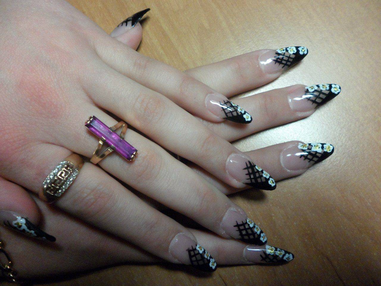 Острые ногти сами по себе смотрятся достаточно заметно и вызывающе, поэтому стоит использовать на них сдержанный и лаконичный дизайн. Чаще всего обладательницы острых длинных ногтей предпочитают однотонные нейл-арты в светлых оттенках: розовом, кремовом, сером, молочном. Не исключены варианты с черным и бордовым гель-лаком. Они также дополняются стразами, кристаллами Пикси, бульонками.