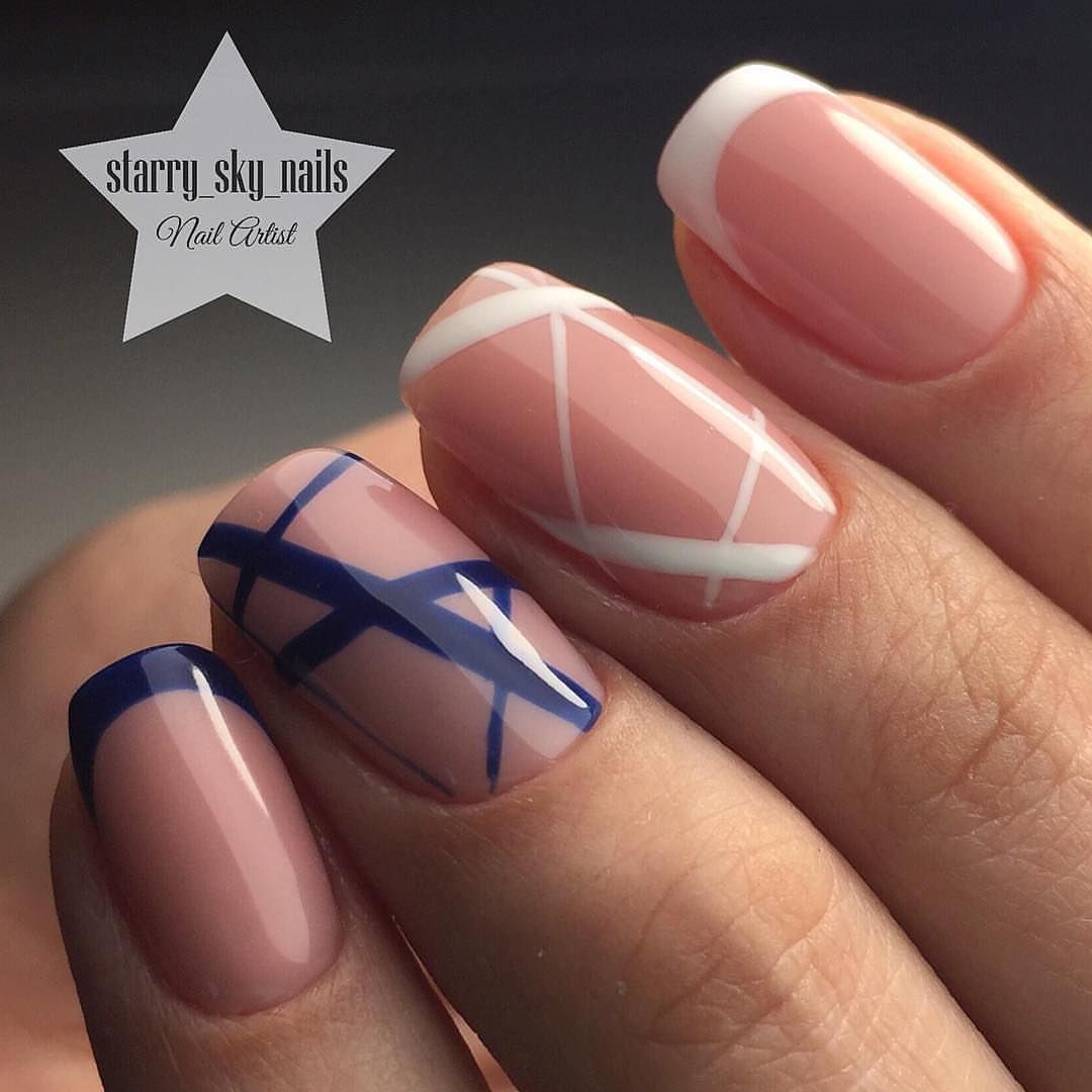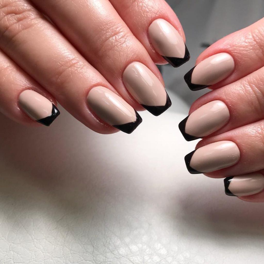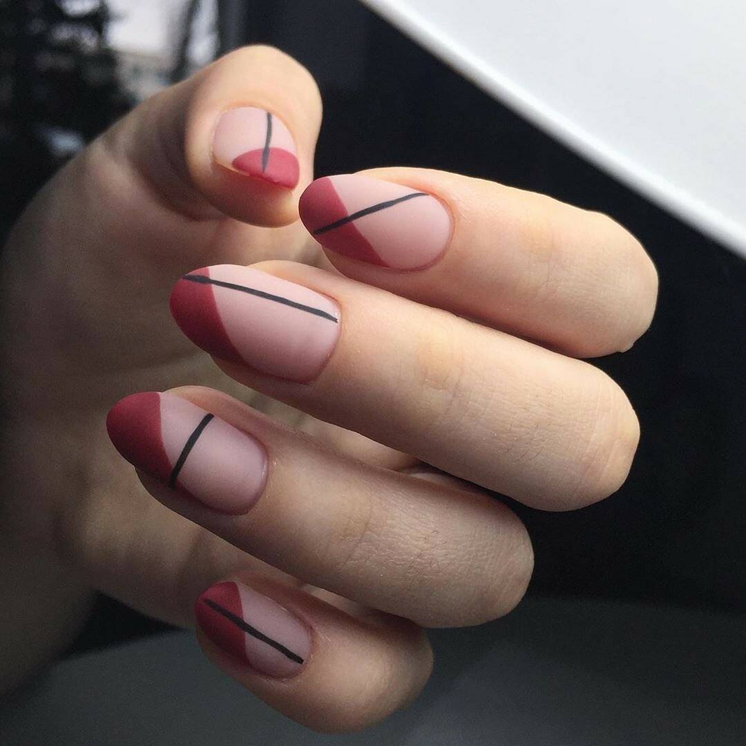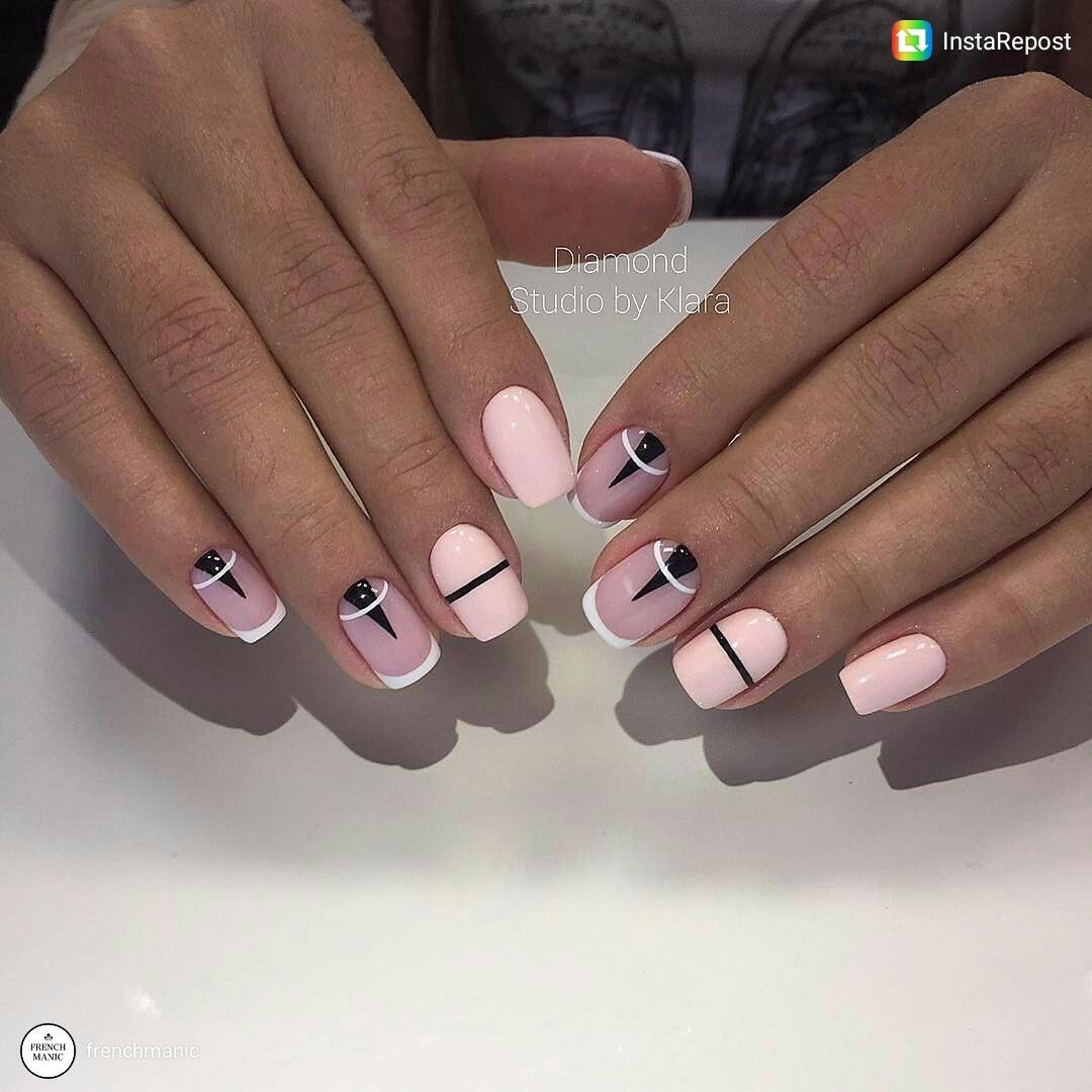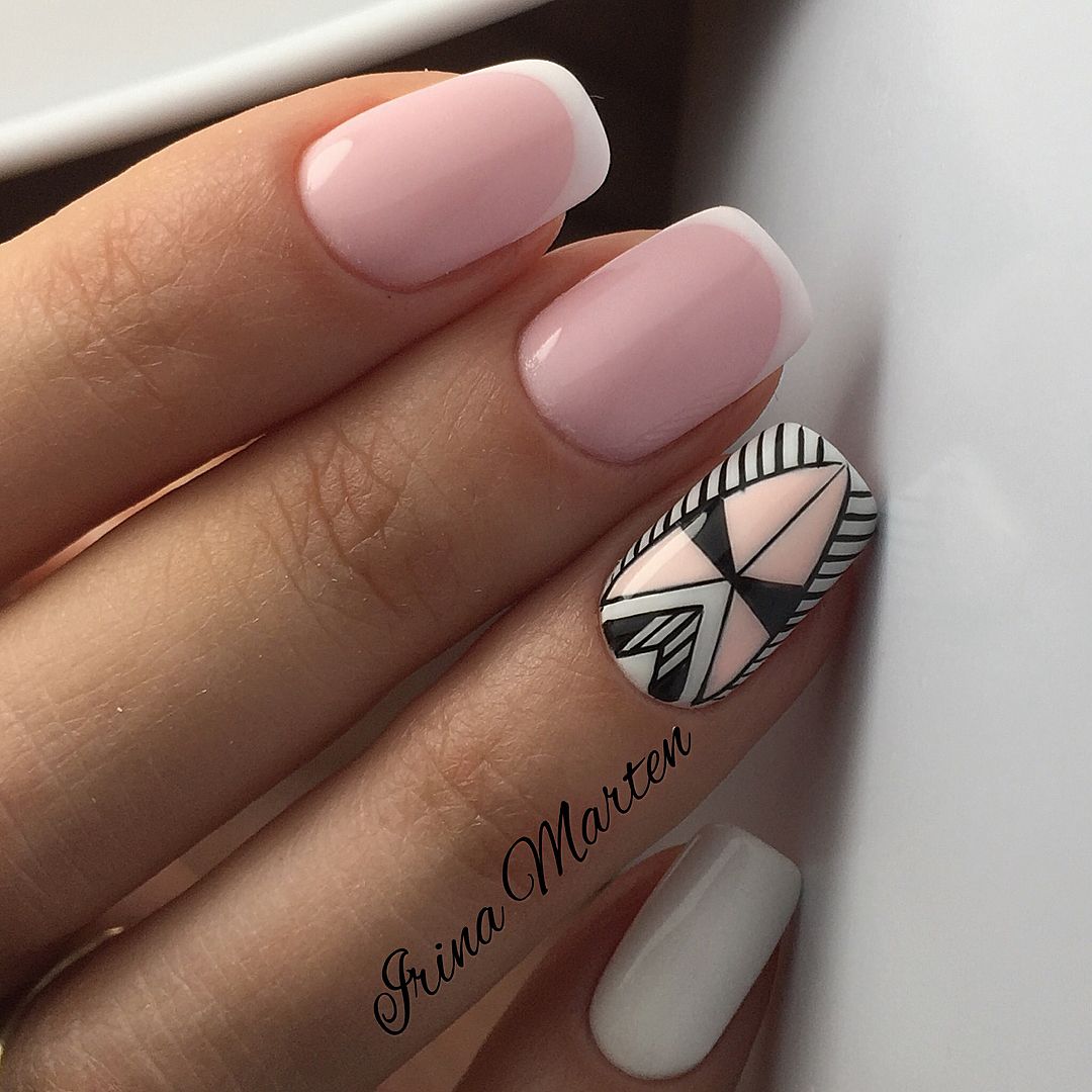 Геометрические формы всегда выглядят стильно. Интересно смотрится френч с треугольной линией по краю ногтя вместо привычной закругленной.