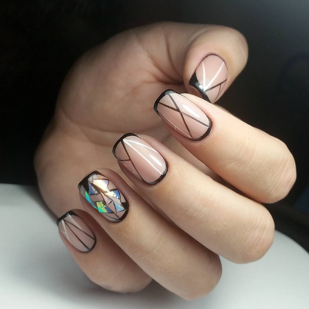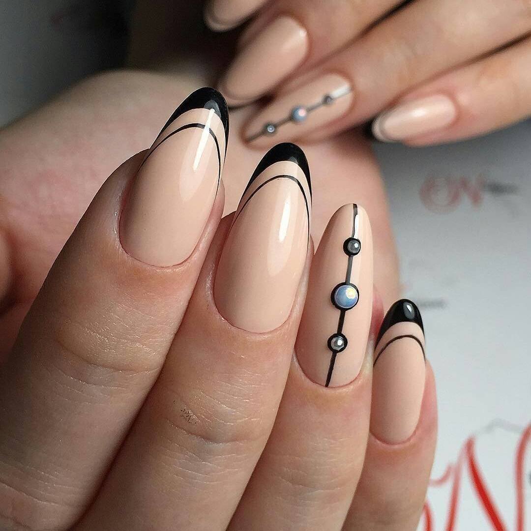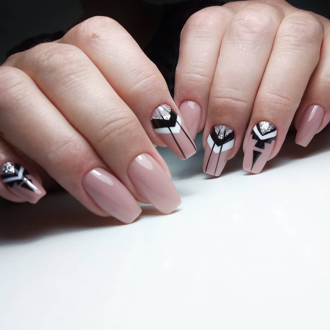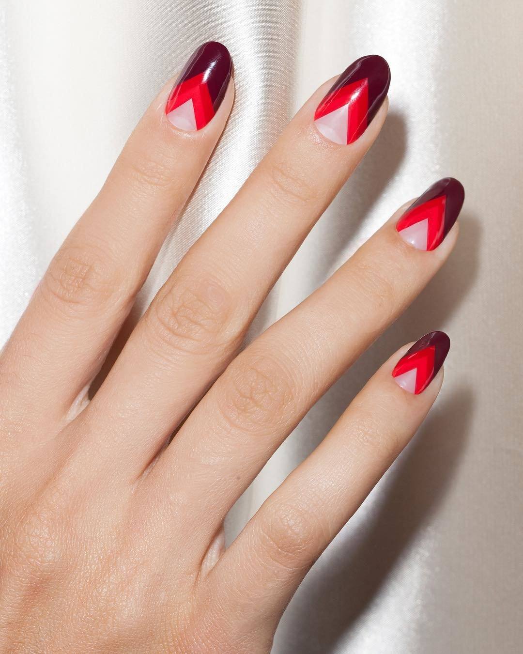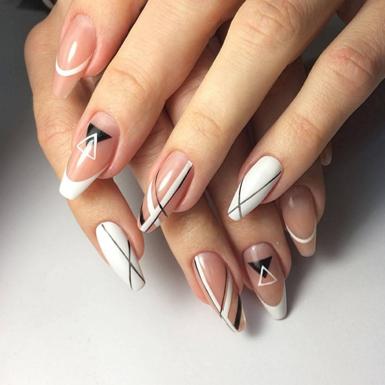 Геометрические формы всегда выглядят стильно. Интересно смотрится френч с треугольной линией по краю ногтя вместо привычной закругленной.