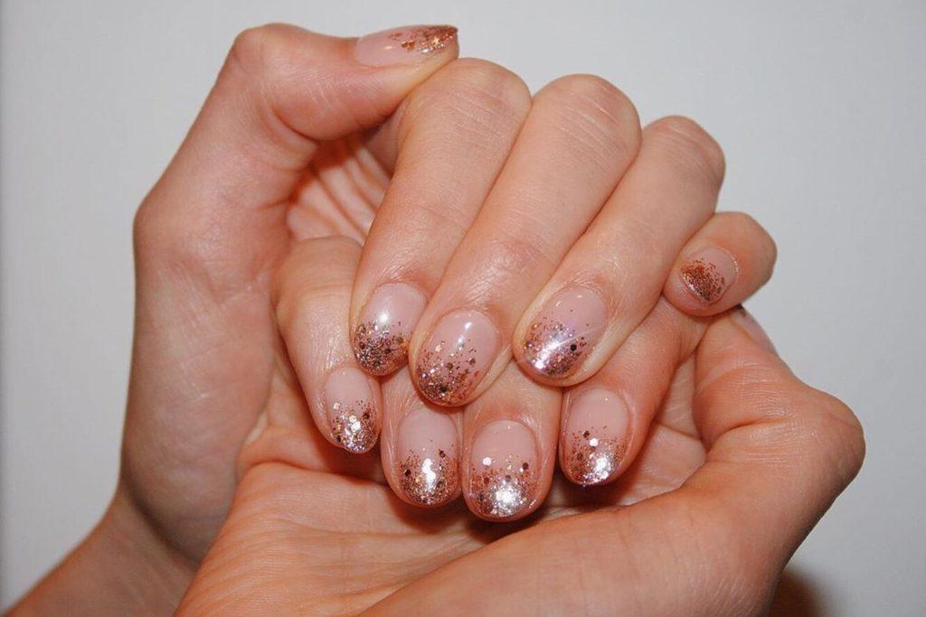 - Сверху ноготь покрывается светлым прозрачным розовым или персиковым лаком;