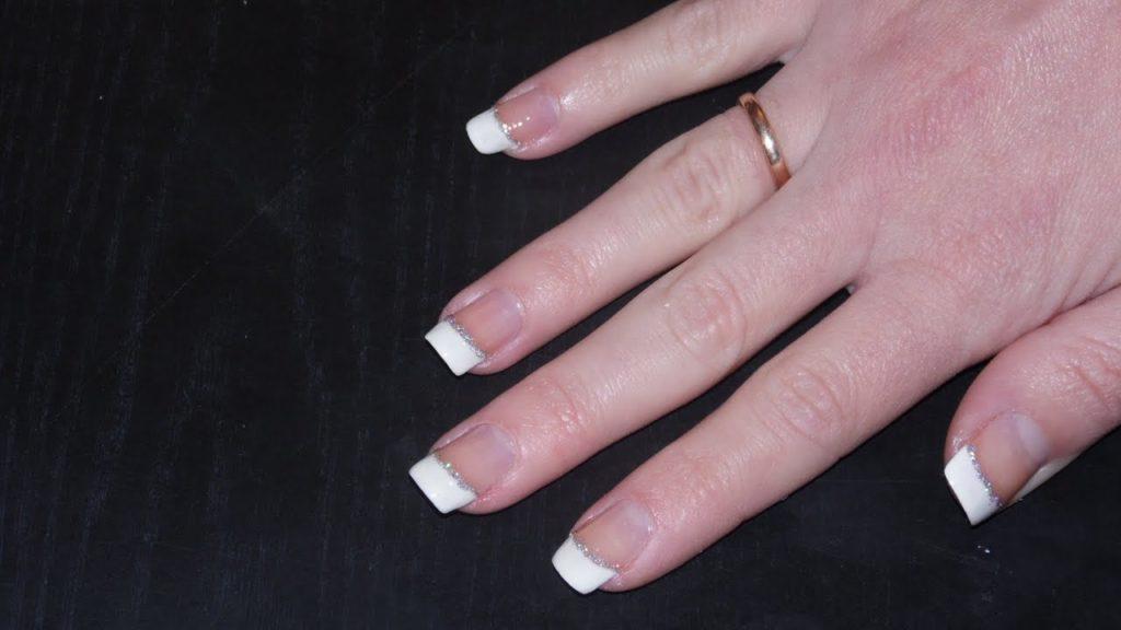 Без лака френч возможен, но он будет держаться гораздо хуже, чем с использованием хотя бы прозрачного вида. Для окрашивания зоны улыбки вам понадобиться акриловая краска любого цвета. Выделите с помощью нее зону улыбки, а остальной ноготь оставьте без окрашивания. Вместо краски можно нанести на зону улыбки немного клея, а сверху присыпать блестками.