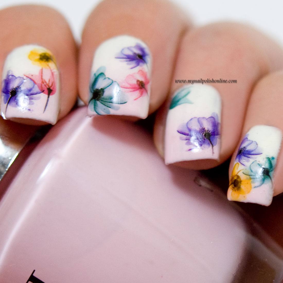 #4 Маникюр с цветами по-мокрому 2020