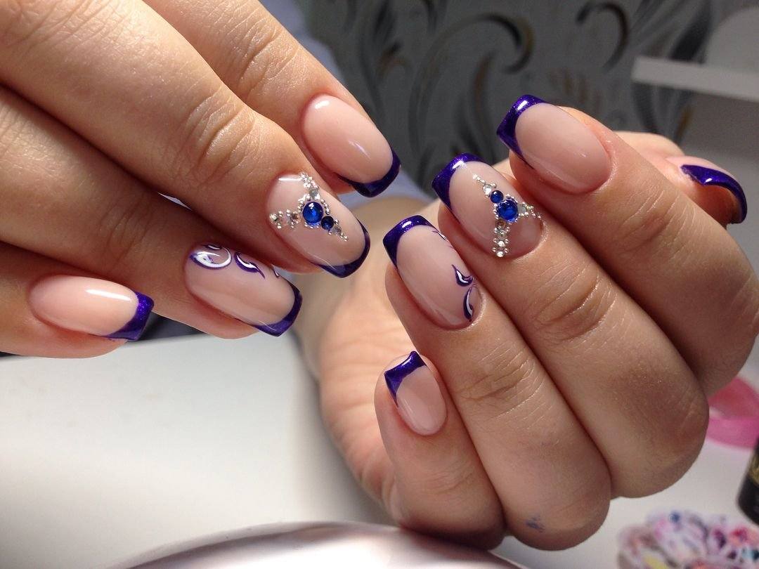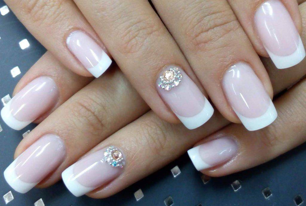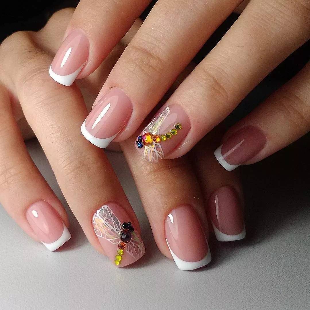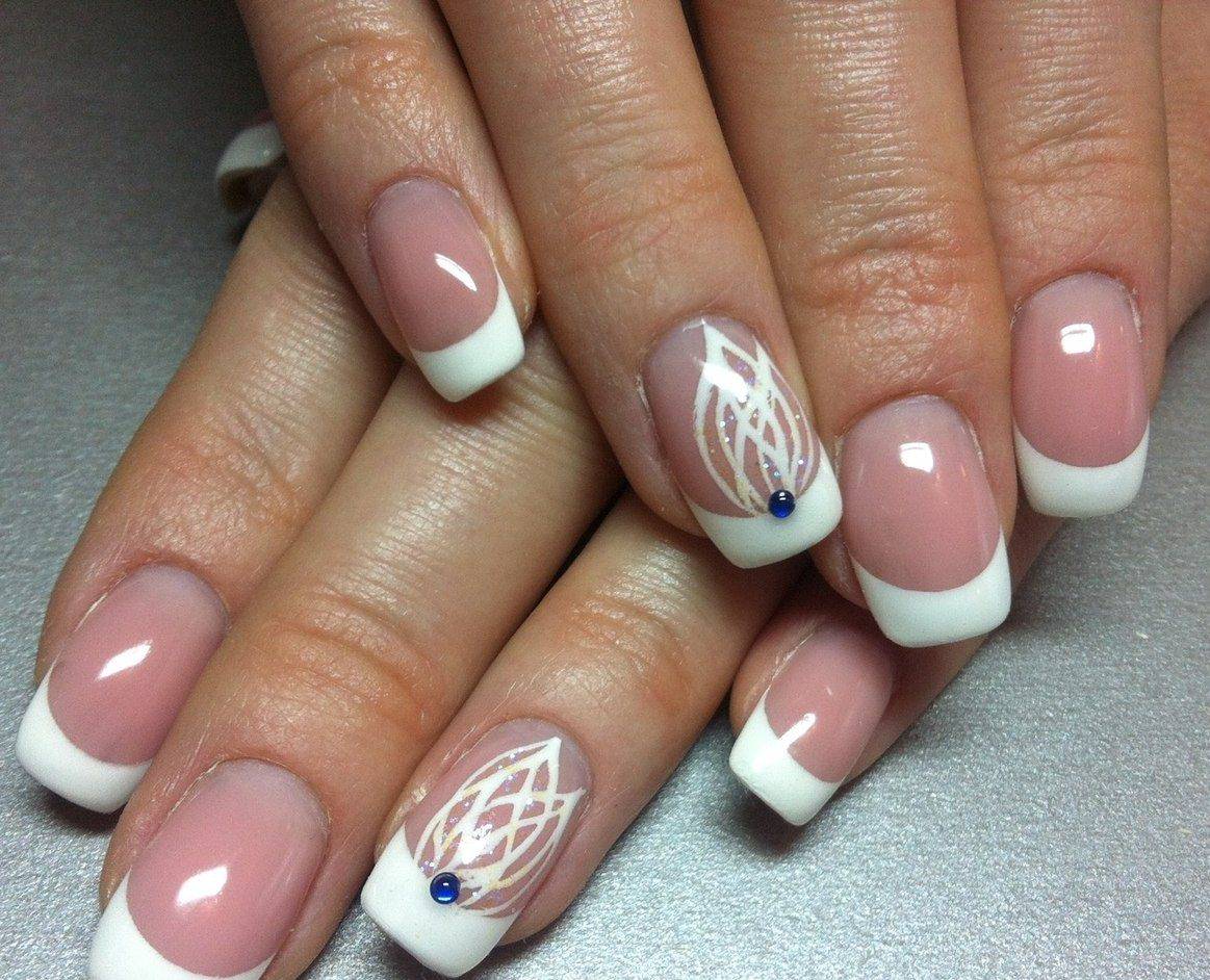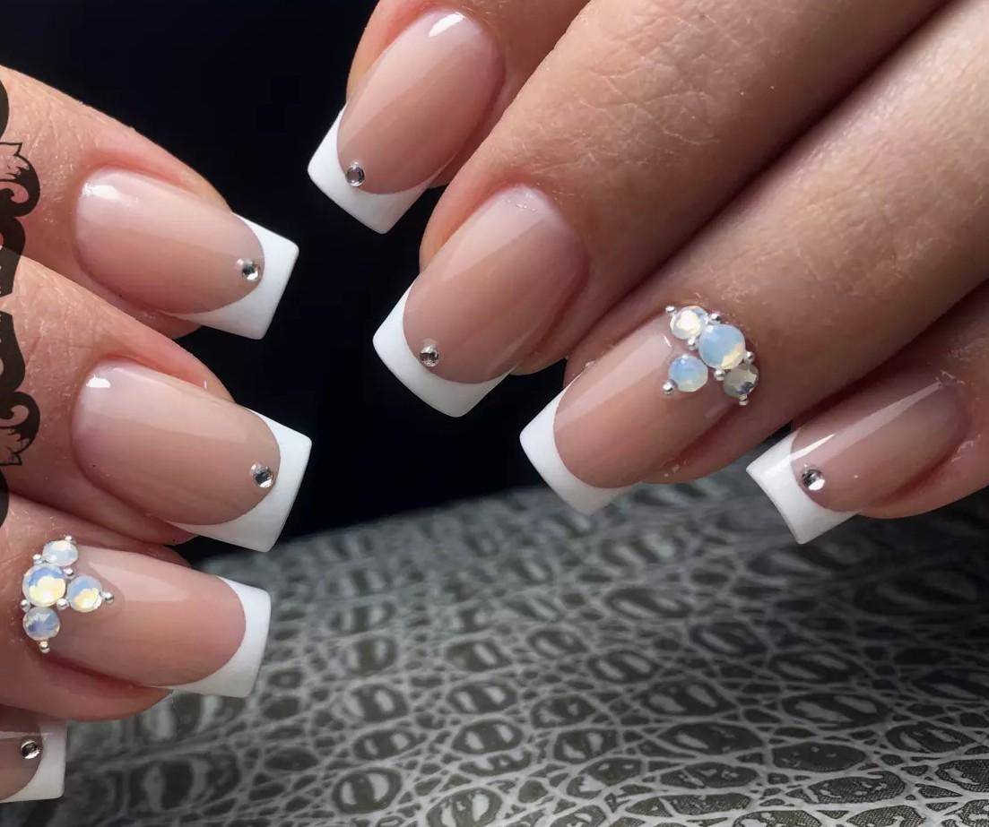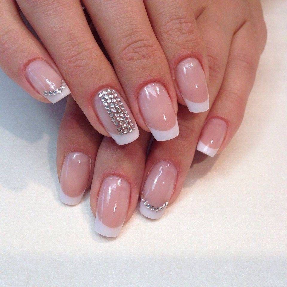 Френч со стразами, рисунком, блестками и другие идеи декора французского маникюра