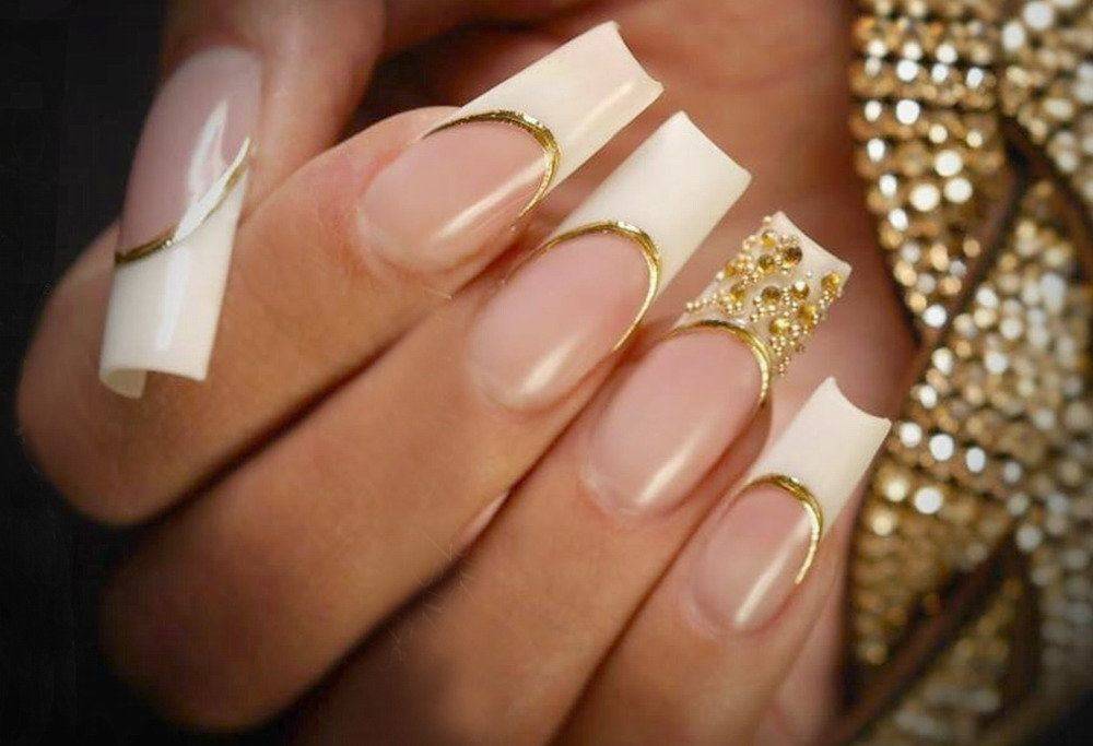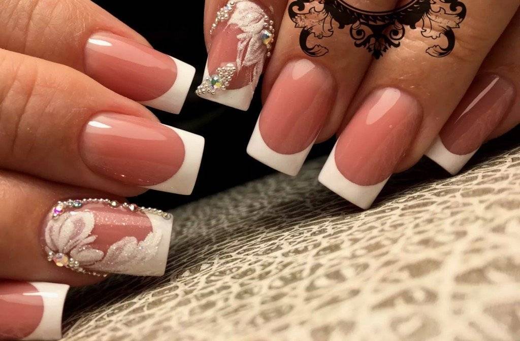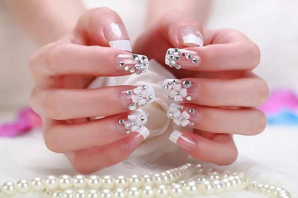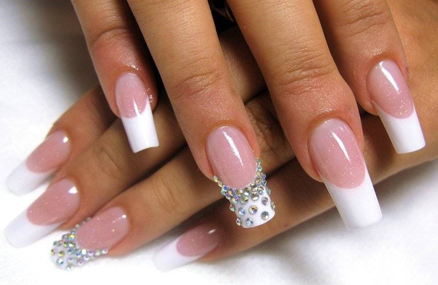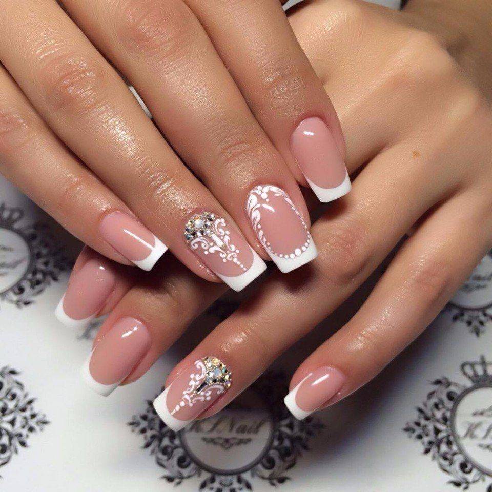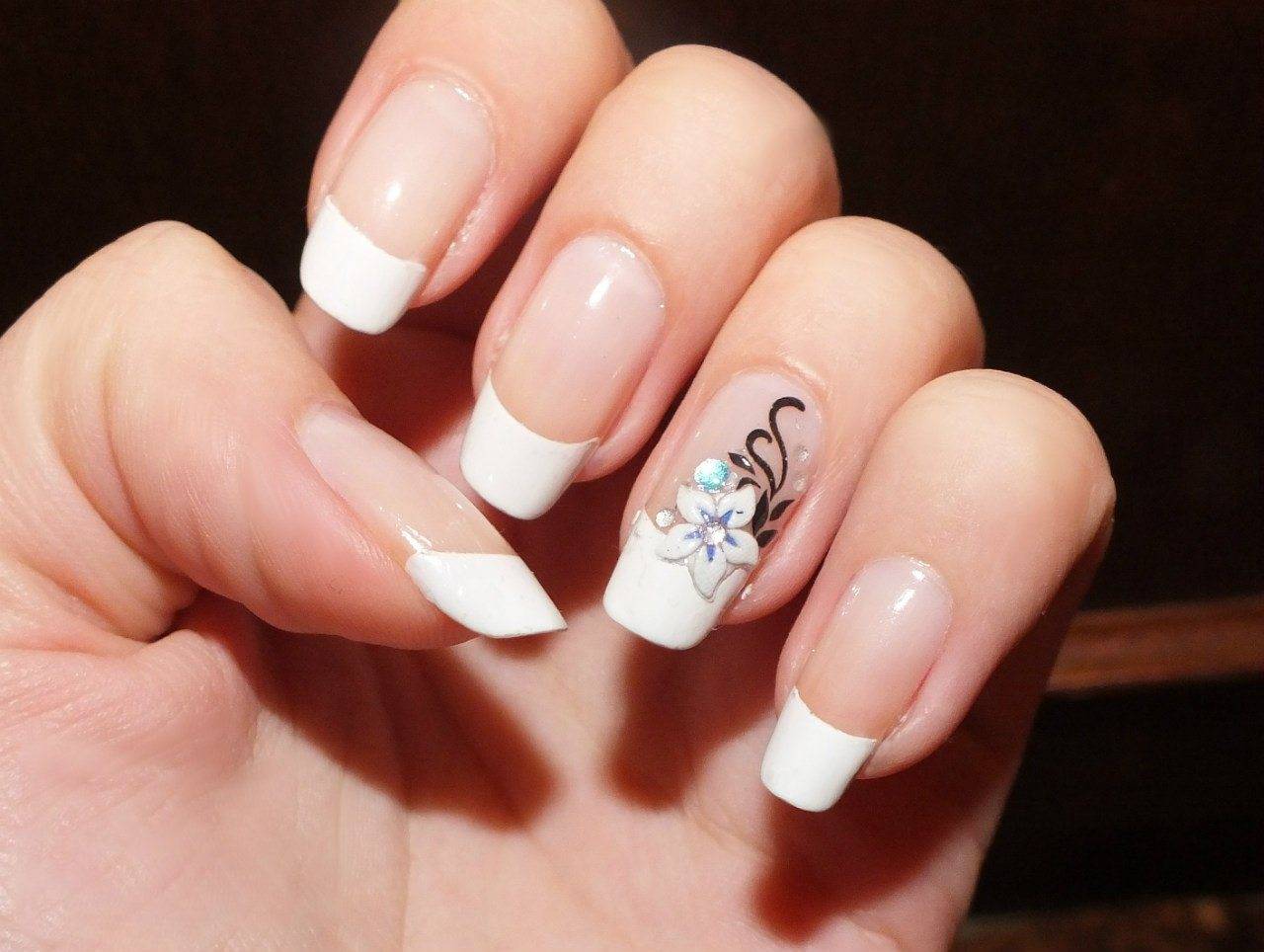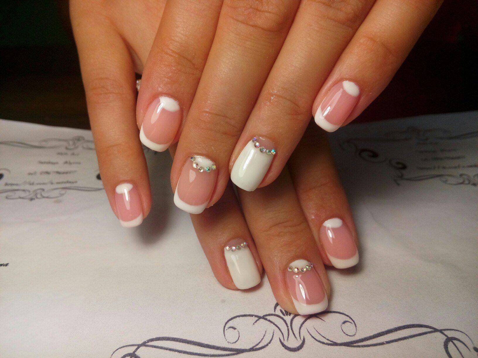 Френч со стразами, рисунком, блестками и другие идеи декора французского маникюра