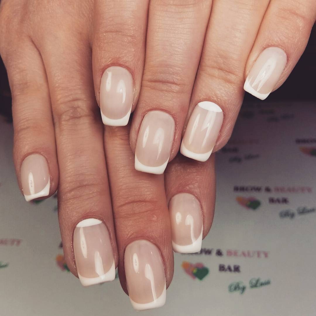 Классический вариант французского маникюра вошел в моду почти полвека назад и до сих пор из нее не выходит. Это идеальный вариант для коротких ногтей, так как он делает образ женственным при его скромности и простоте. В оригинальном дизайне ногтевая пластина покрывается прозрачным или светло-молочным лаком, а улыбка на кончике ногтя выделяется белым или более темным молочным цветом. Сверху наносят закрепитель, что придает маникюру блеск и здоровый вид. Такой маникюр еще называют белым френчем на коротких ногтях.