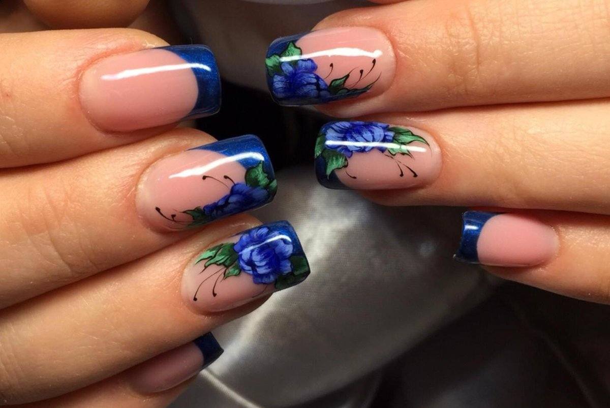 Французский маникюр – это вид маникюра, который совмещается практически со всем. Если вам захотелось добавить изюминку в свой маникюр, то смело можете выбирать себе рисунок. Френч с рисунком на коротких ногтях, как на фото, отлично подойдет на любую длину и сделает маникюр более выразительным. С классическим вариантом лучше всего будут смотреться узоры или цветы, а под яркие цвета вы можете выбрать любой интересный или забавный рисунок. на короткие ногти обычно украшают мелкими цветочными или витиеватыми узорами нежно-розового, бежевого или молочного цвета.