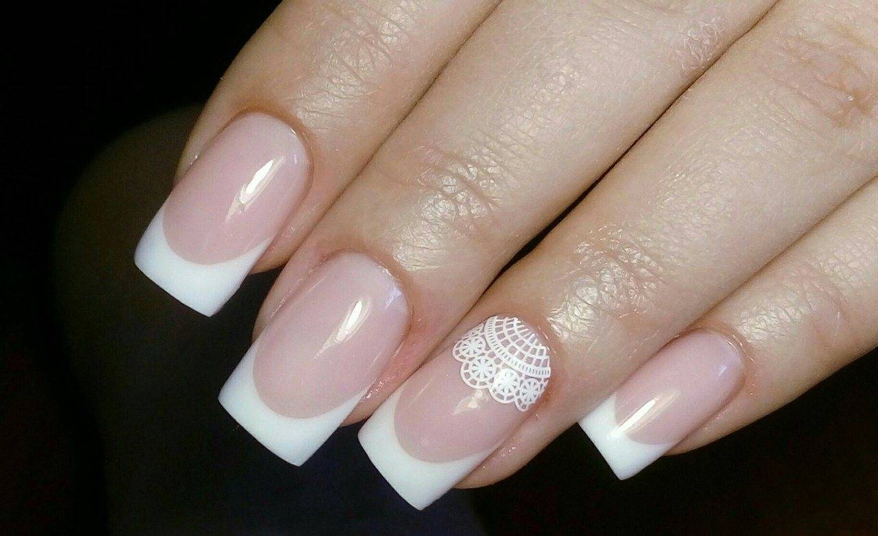 Классика белого френча абсолютно гармонично смотрится на коротких ногтях. Если вы используете белый цвет для дизайна края ногтевой пластины, покройте основание ноготка бежевым, розовым, серым или тёмным цветом. Короткие ноготки с тонкой линией улыбки и использование минимум декора — тренд этого сезона, но новомодные техники постоянно вносят новые идеи для белого френча. Мастера бьюти-сервиса предложили идею наносить на улыбку зеркальный, жемчужный или перламутровый налёт. Получилось просто превосходно! Это решение идеально вписалось в женскую привлекательность и оставило хорошие отзывы современных модниц. Сейчас очень популярен сдержанный дизайн, небольшой милый рисунок или просто оттенок другого лака на безымянном пальце. Можно добавить на ноготок элементы втирки, градиента или элементы мраморного маникюра. Аккуратно придаст изюминку несколько сверкающих камней на пальчиках. Белый френч всегда пользуется спросом в создании свадебного образа. Многие невесты выбирают помимо росписи и кружев на ногтях, изысканные варианты с лепниной и жемчугом.