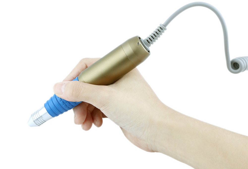 - В комплекте к этой ручке идут плохие фрезы, поэтому возможно придется приобрести новые, в алмазным напылением. Для снятия гель-лака идеальный вариант — керамическая кукурузка с синей насечкой. В комплекте нет фрезы-шар, поэтому ее придется приобрести отдельно. Она необходима для удаления сухой кутикулы.
