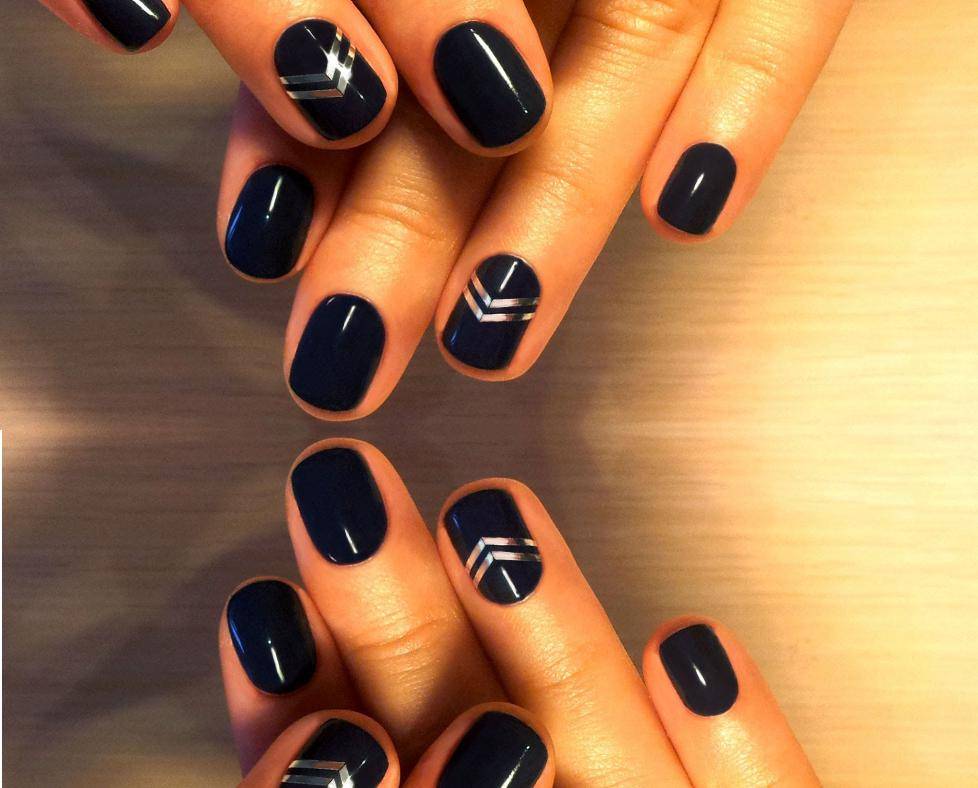 - Оформление всех ногтей черным лаком.