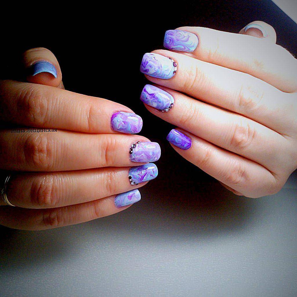 Новинкой маникюра с невероятными по красоте и легкости узорами является рисование на мокром гель лаке. Размытый рисунок выделит ваш маникюр оригинальностью и стильным дизайном.
