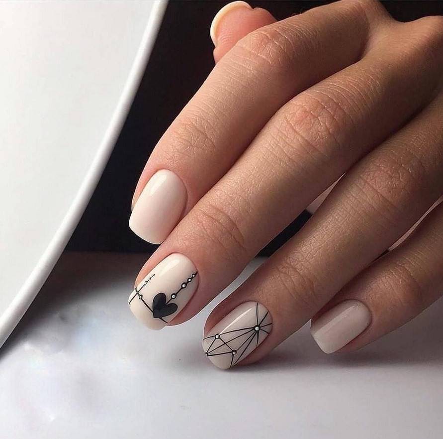 Самый безукоризненный цвет для маникюра в этом году. Бежевый в сочетании с чёрным глубок и выразителен. Но и здесь в приоритете минимализм и тонкие линии.