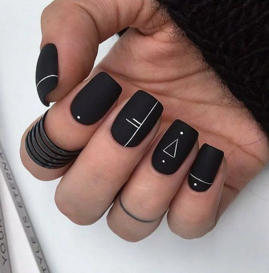 Вовсе не обязательно создавать и яркие рисунки, чтобы привлечь внимание к своим рукам. Геометрия в матовом дизайне уникальна