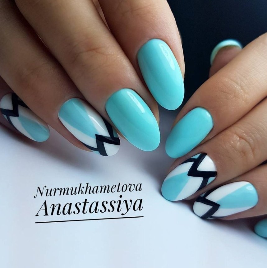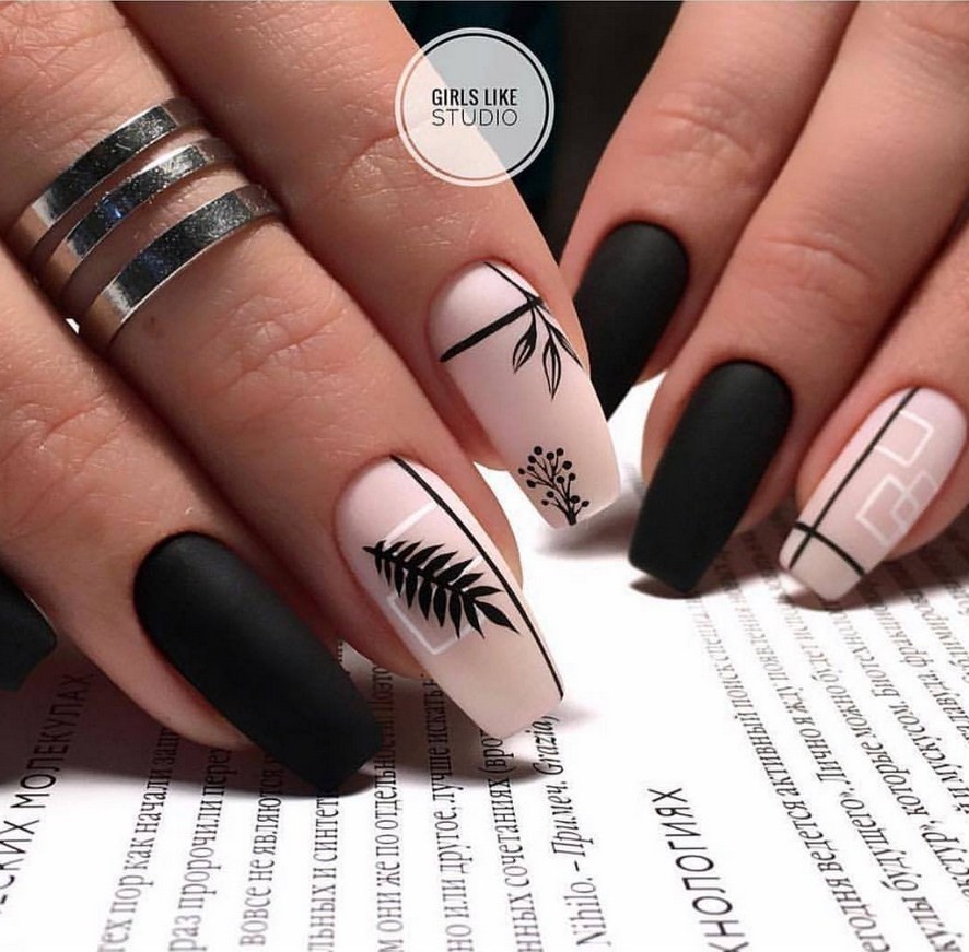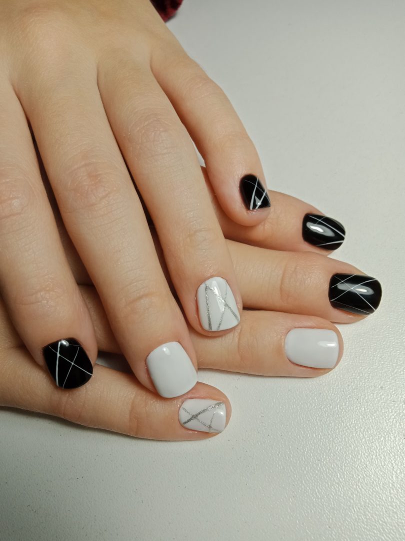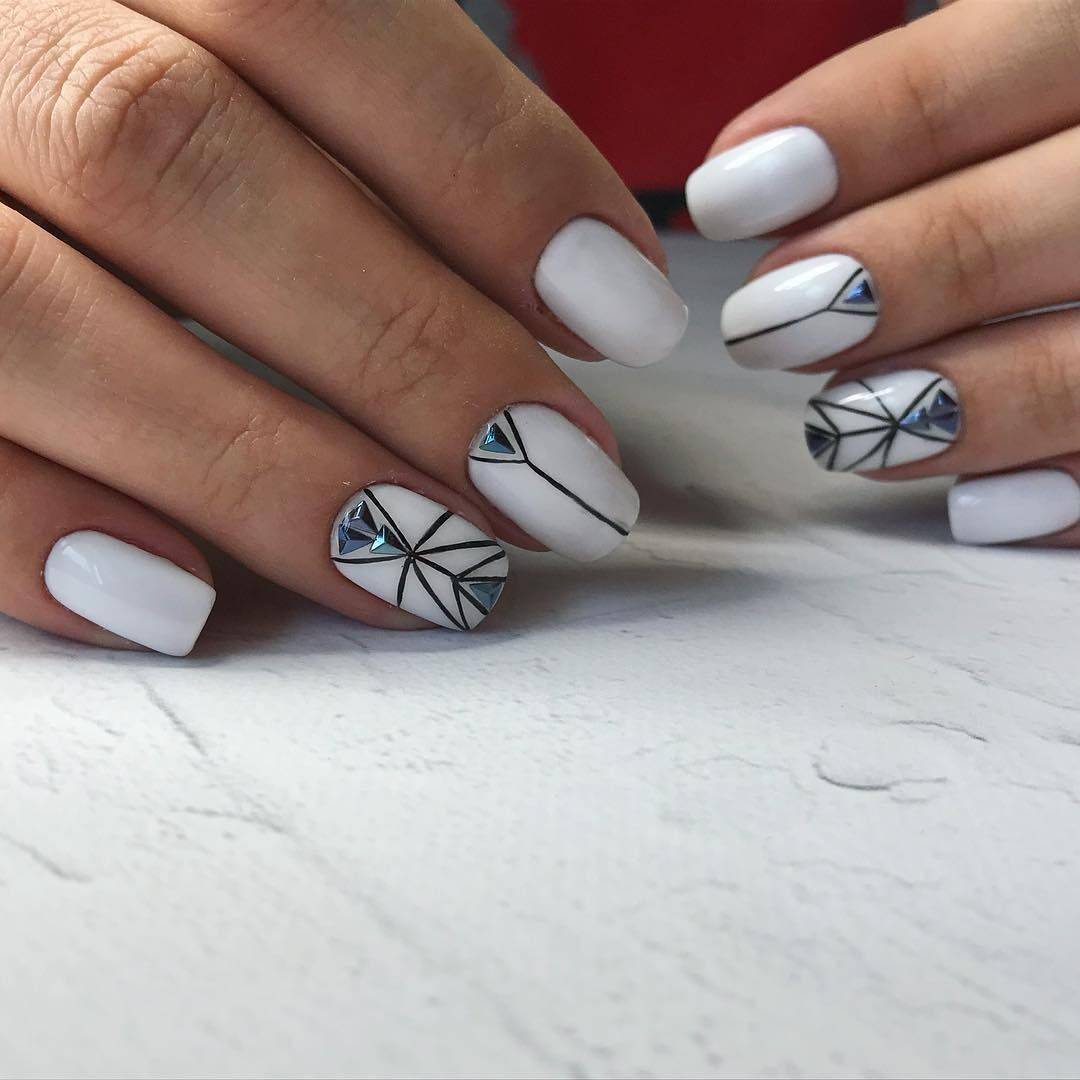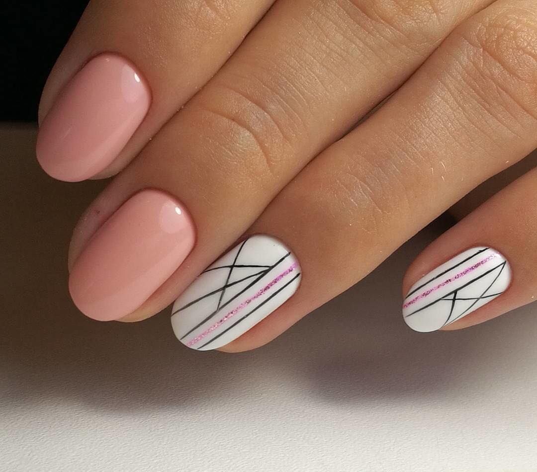 Важно соблюсти гармонию. Например, два белых ногтя с чёрной геометрией или наоборот