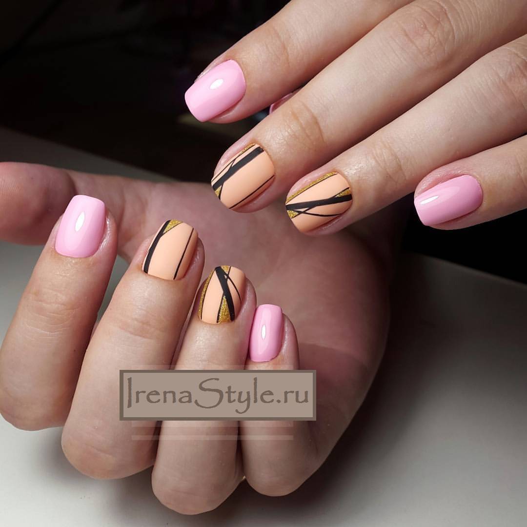 - Маникюр «геометрия» на коротких ногтях прекрасно выглядит на матовой поверхности.