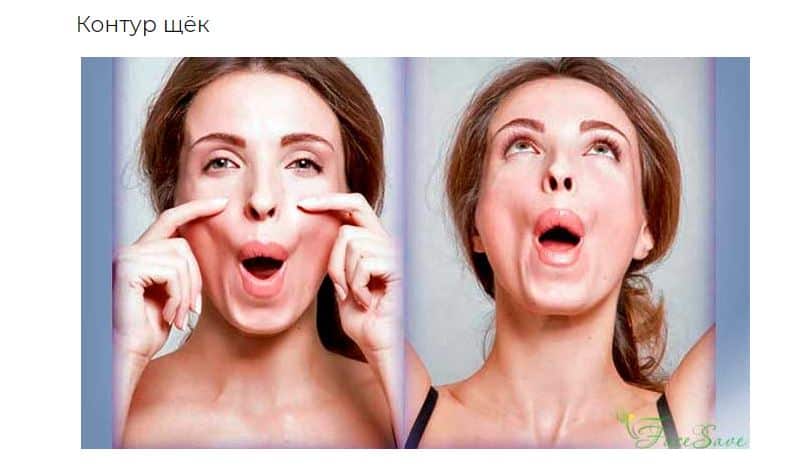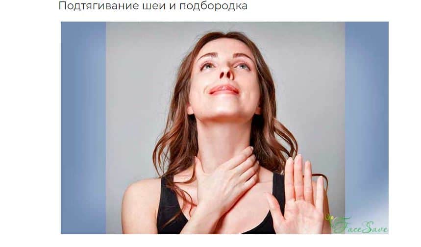 - Далее следуют упражнения для подтяжки мышц лица и шеи.
