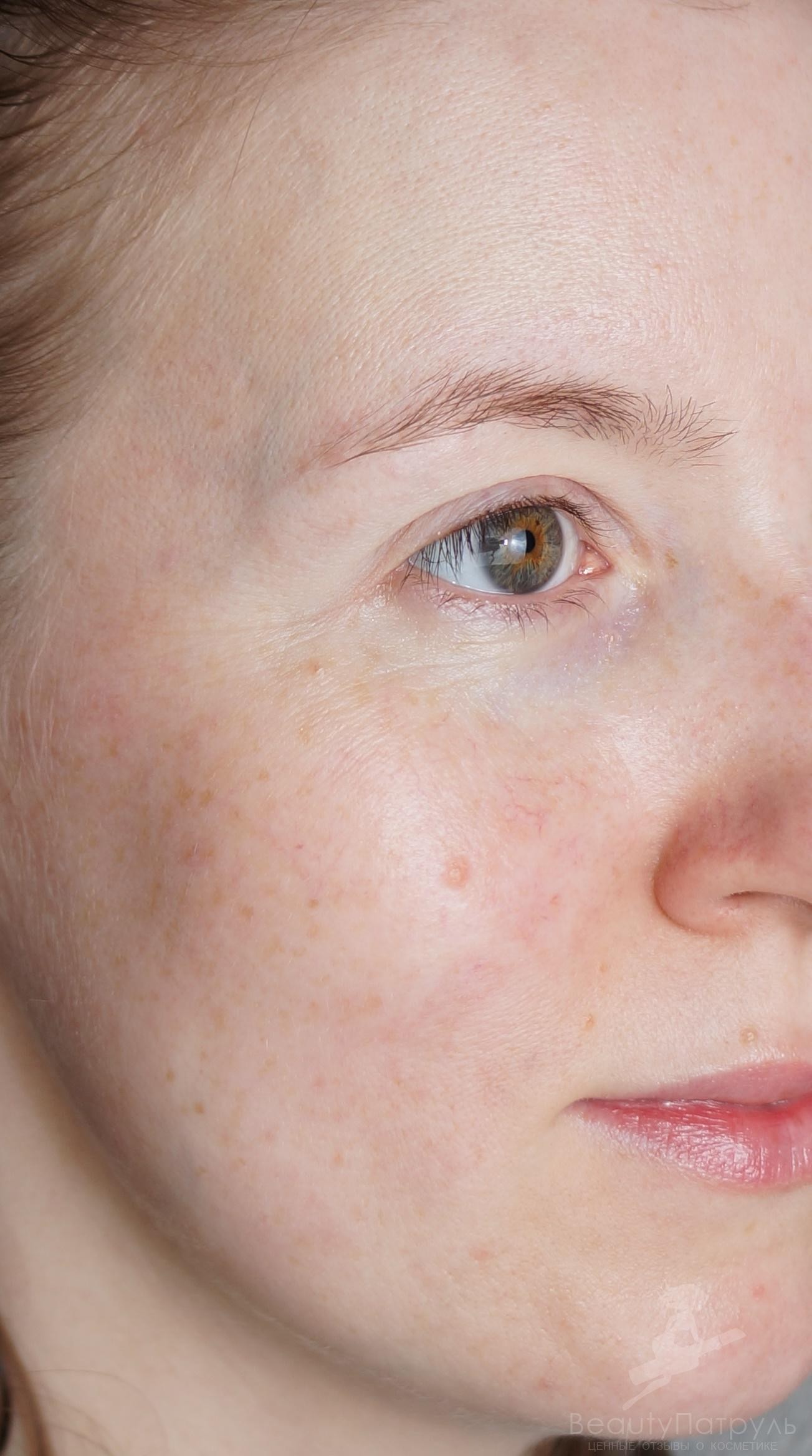 Одна досада – на крыльях носа я вижу подчеркнутые поры и шелушения, хотя на фото «до» их в упор не вижу … Это печаль.