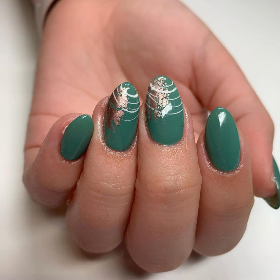 Ногти овальной формы также имеют огромное количество поклонниц. Овальный маникюр естественен и практичен, в случае необходимости помогает подкорректировать ассиметричную форму ногтевой пластины. Модными цветами нежного овального маникюра этого года стали сдержанные оттенки розового, голубого, персикового, мятного, серого, бежевого, для которых выбирают подходящие актуальные нейл-дизайны. В их числе декор с помощью различных видов блестящей фольги, например, «битое стекло», матовое покрытие, дизайн блестками, декоративными камешками, бусинами, стразами, разнообразные тематические виды принтов.