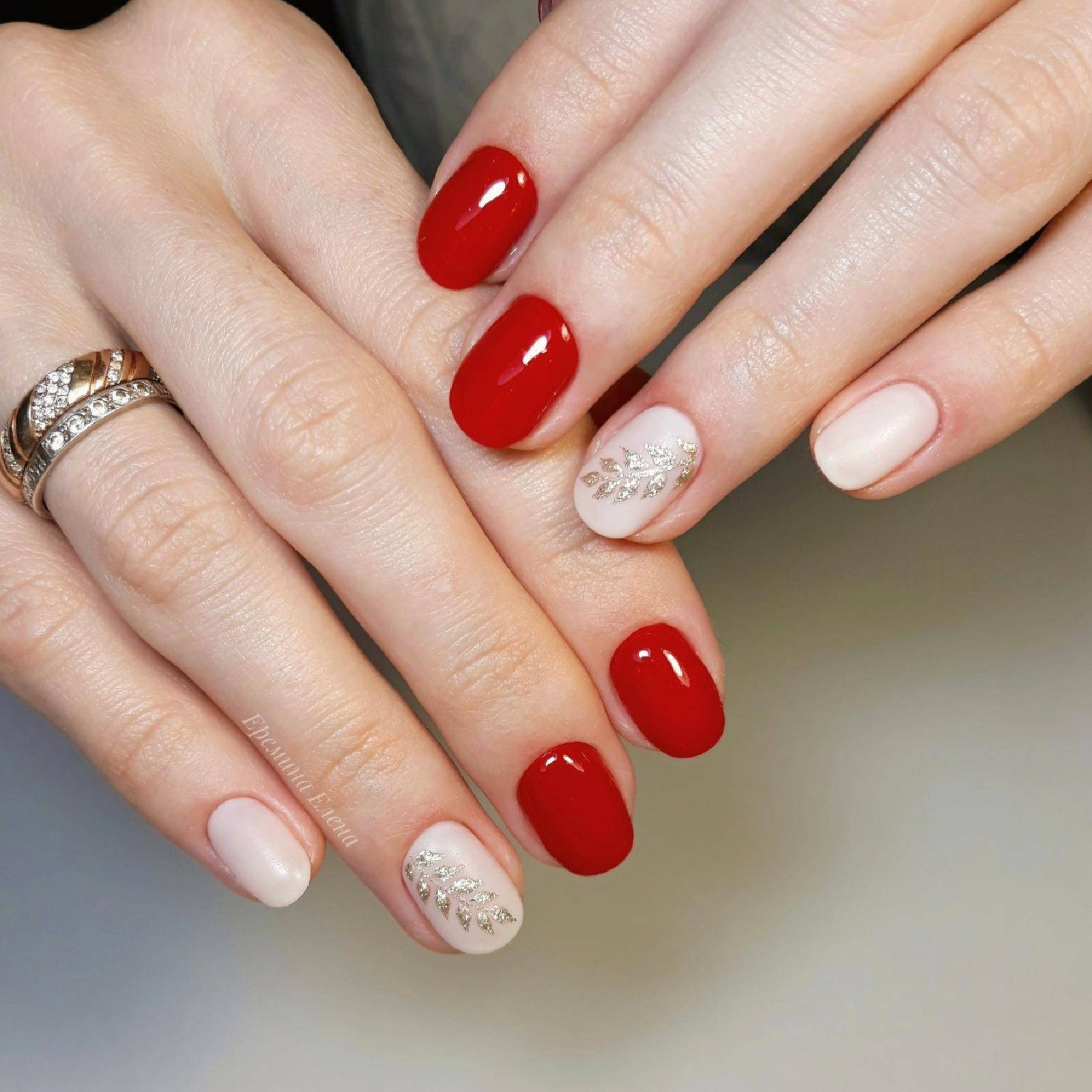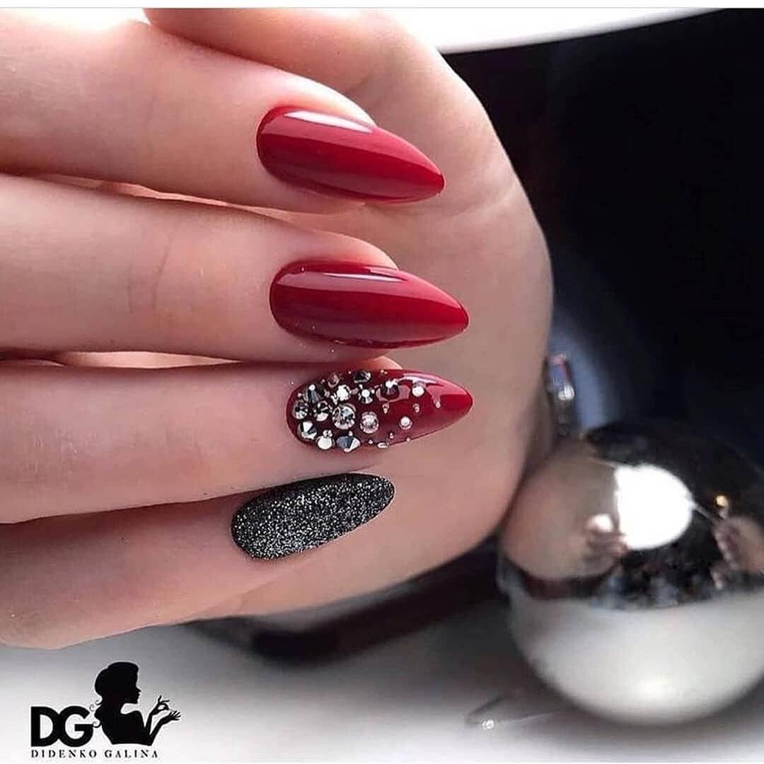 Розовый и красный цвета великолепно смотрятся с блестящим декором. Для маникюра можно использовать серебряный глиттер, конусные и классические стразы, пайетки и другой декор. Что касается золотого глиттера, то с красным и розовым цветом его нужно использовать по-минимуму. Такое сочетание уместно в торжественных образах, при условии сочетания с аксессуарами или платьем.