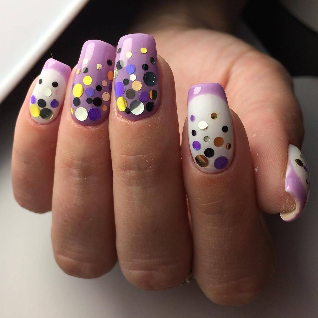 Многие обладательницы маникюра с короткими ногтями с опаской выбирают цвет лака. Считают, если короткие ногти, то можно выбирать и наносить только светлые оттенки лака. Но это не так. Сиреневый цвет смотрится великолепно и на длинных, и на коротких ногтях. Главное условие для маникюра в любом цвете – это ухоженные, здоровые и чистые ногти и руки. Тем более, что его можно дополнить эффектными блёстками, стразами, фольгой, слюдой, пайетками, биндисами. Даже небольшое количество блёсток мгновенно преобразит маникюр. Такие ноготки будут прекрасно смотреться и в праздники, и в будни.