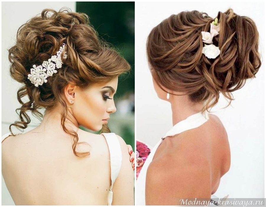 Основой такой прически является начес. Эффектней она будет смотреться на вьющихся волосах: