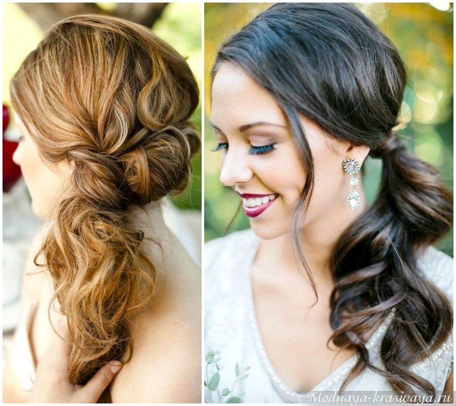 Прическа на длинные волосы проста в исполнении, подчеркнет красивые, густые локоны. Для начала их завивают, собирают в боковой хвост и перехватывают резинкой. Лента из бусин идеально обвивает их. Романтическое свидание пройдет легко и непринужденно, на все поставленные вопросы отыщутся ответы.
