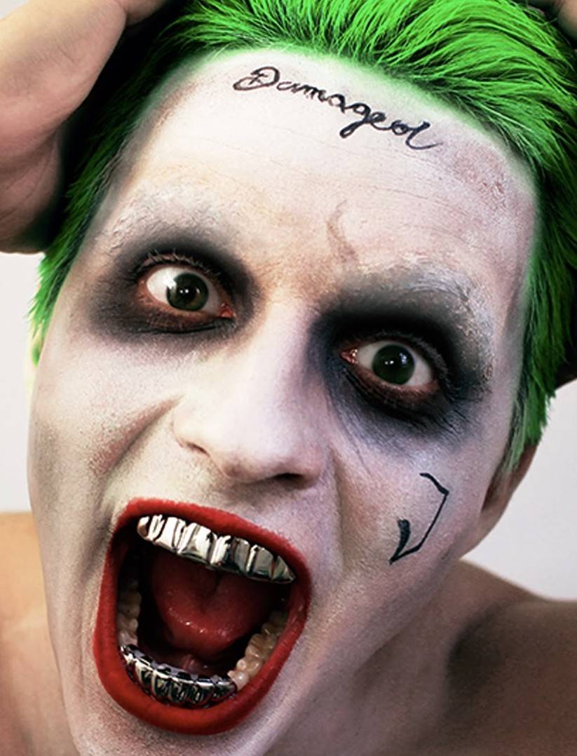 Джаред Лето по замыслу авторов киноленты настоящий псих, получающий наслаждение от увечий собственного тела. Сам образ рождался долго, и большая его часть явилась сущей импровизацией. Казалось бы, переплюнуть грим Джокера из «Темного рыцаря» просто нереально, но креативные гримеры постарались передать во внешнем виде героя отряда самоубийц весь его сумасбродный внутренний мир.