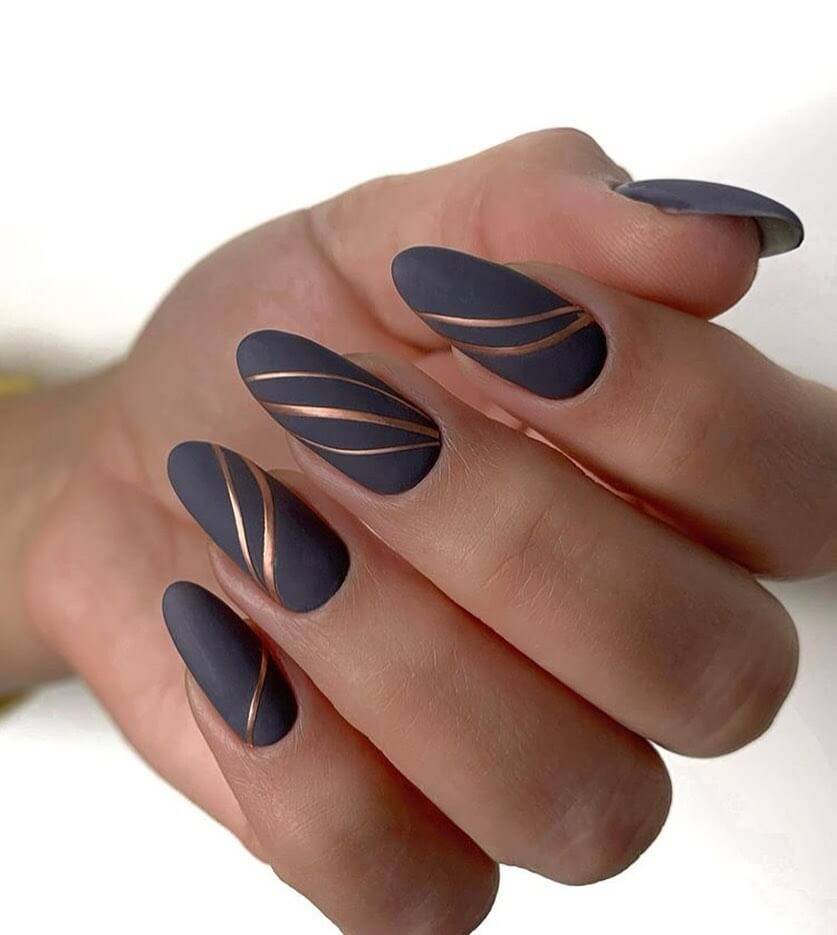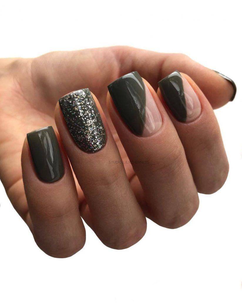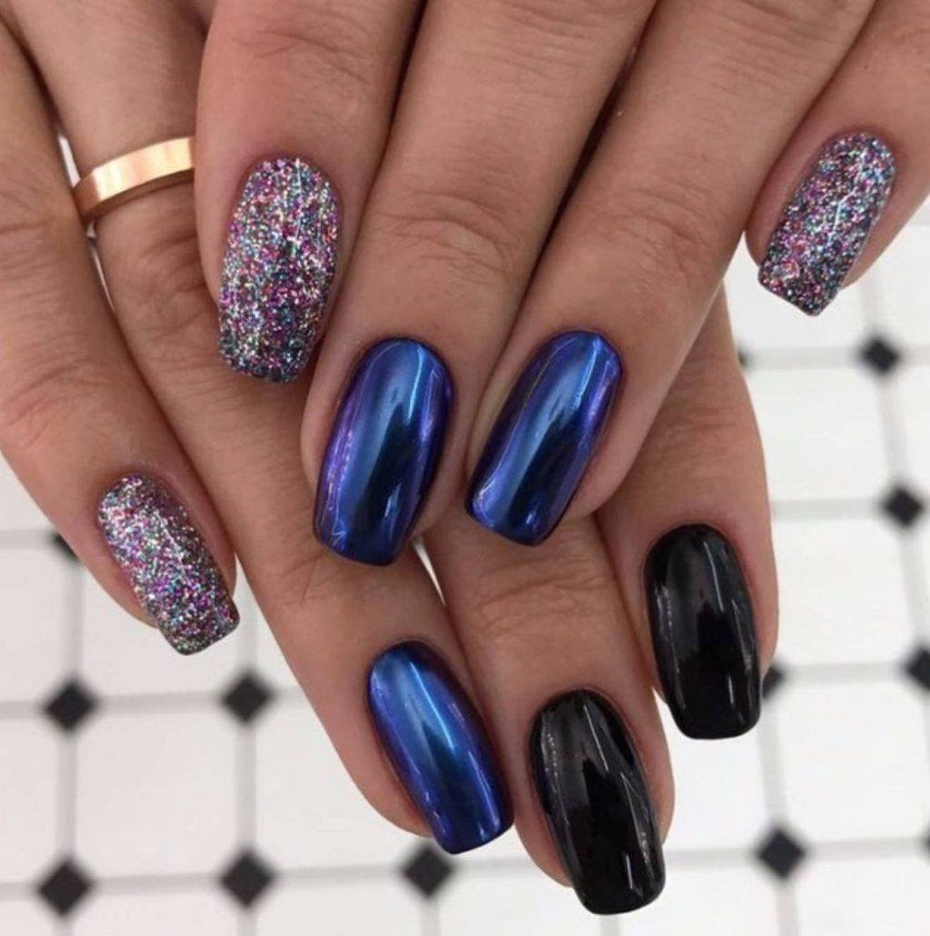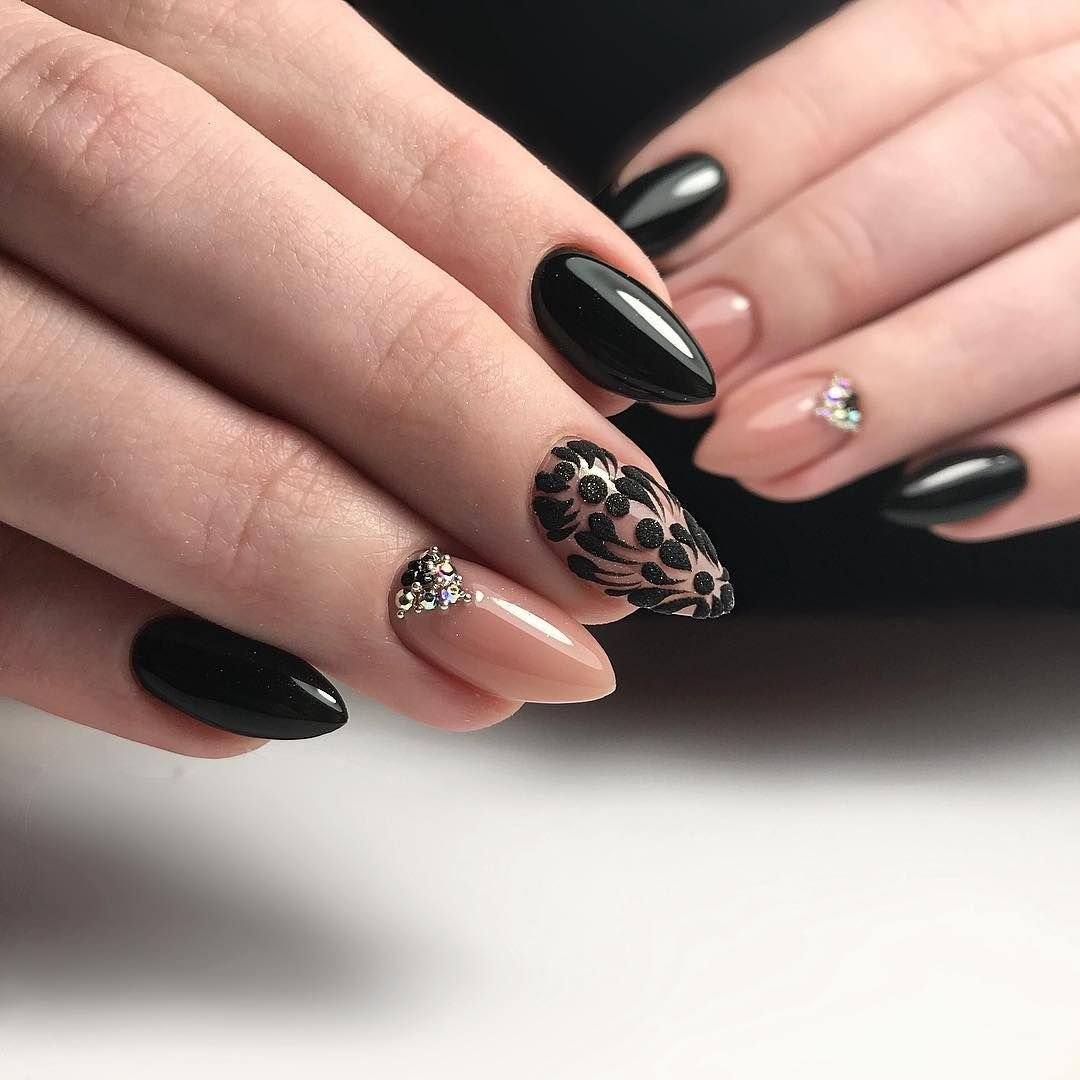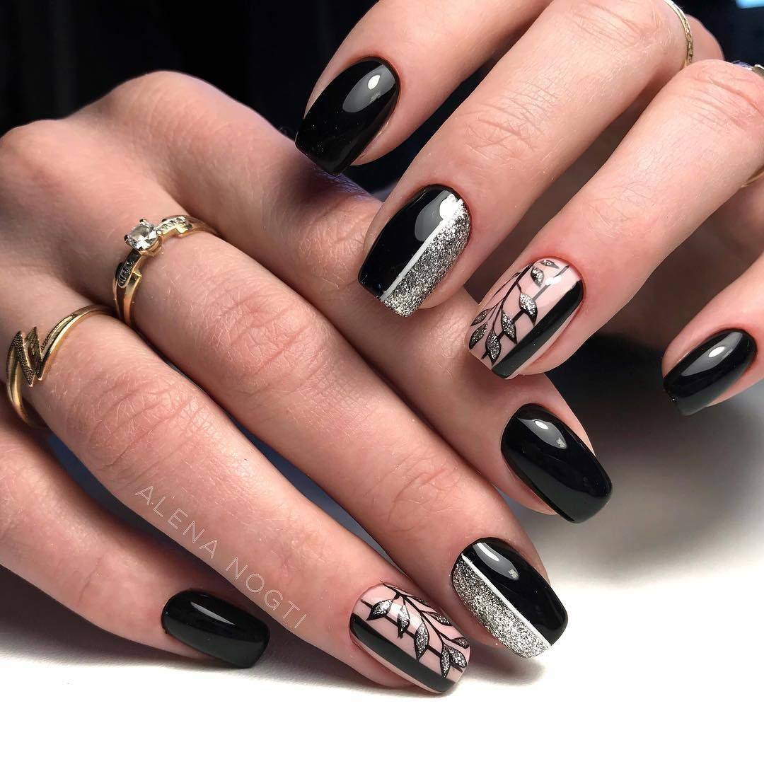 Не смотря на то, что многие барышни стараются избегать в маникюре сочетания тех или иных тёмных оттеков, маникюр в подобном исполнении всегда смотрится изысканно и роскошно. А каким образом можно комбинировать тёмные оттенки покрытий на ноготках между собой вы сможете увидеть на фото примерах ниже. В списке стильных предложений маникюр невероятной красоты в технике «кошачий глаз» с выделением более тёмным цветом безымянного пальца с последующим его украшением стразами. Маникюр с вертикальными полосками и горохом. Нейл-дизайн с рисунками в витражном стиле и шикарный градиент с переходом в чёрный или более светлый оттенок на кончиках ногтевых пластин. А также тёмные ноготки с контрастными вензелями, маникюр с пудровыми рисунками, дизайн с блёстками, нейл-арт с прозрачными участками или маникюр с оттисками фольги в тон покрытий.