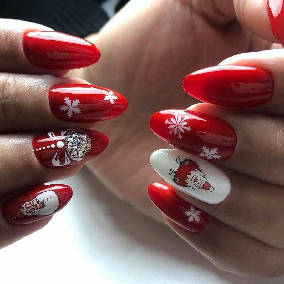 Зима — яркое солнце, мороз, снег. Все это находит свое отражение в ногтевом дизайне. На смену листьям-рисункам приходят снежинки, новогодняя тематика. Теплые оттенки базы сменяются на холодные пастельные, серебристые. Только красный и черный цвета всегда остаются в тренде.