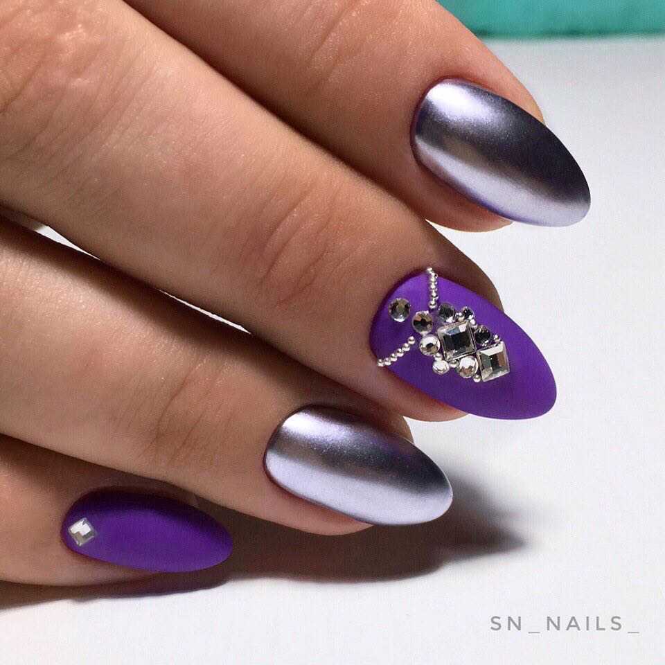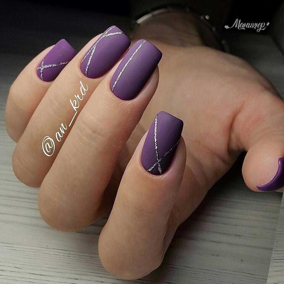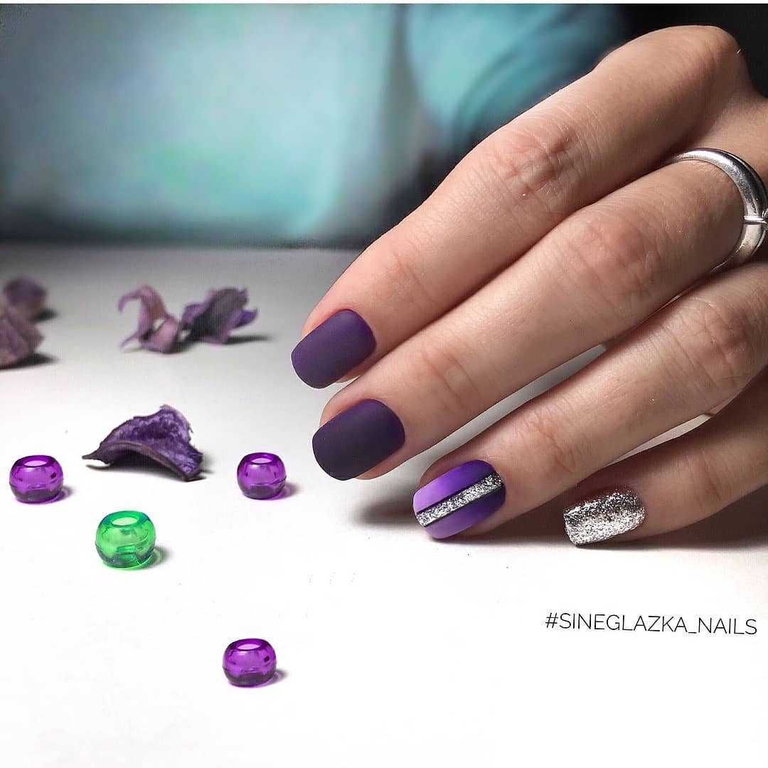 Фиолетовый и серебряный цвет создают эффектное и блестящее сочетание. Вы можете использовать серебряные блестки, фольгу или ленты для добавления мерцающего эффекта к фиолетовому маникюру.