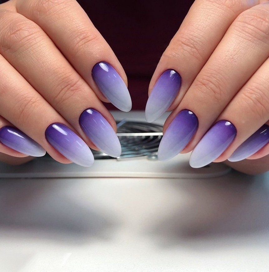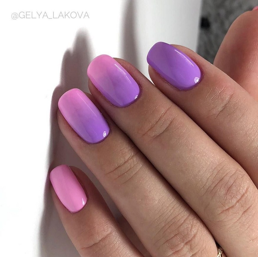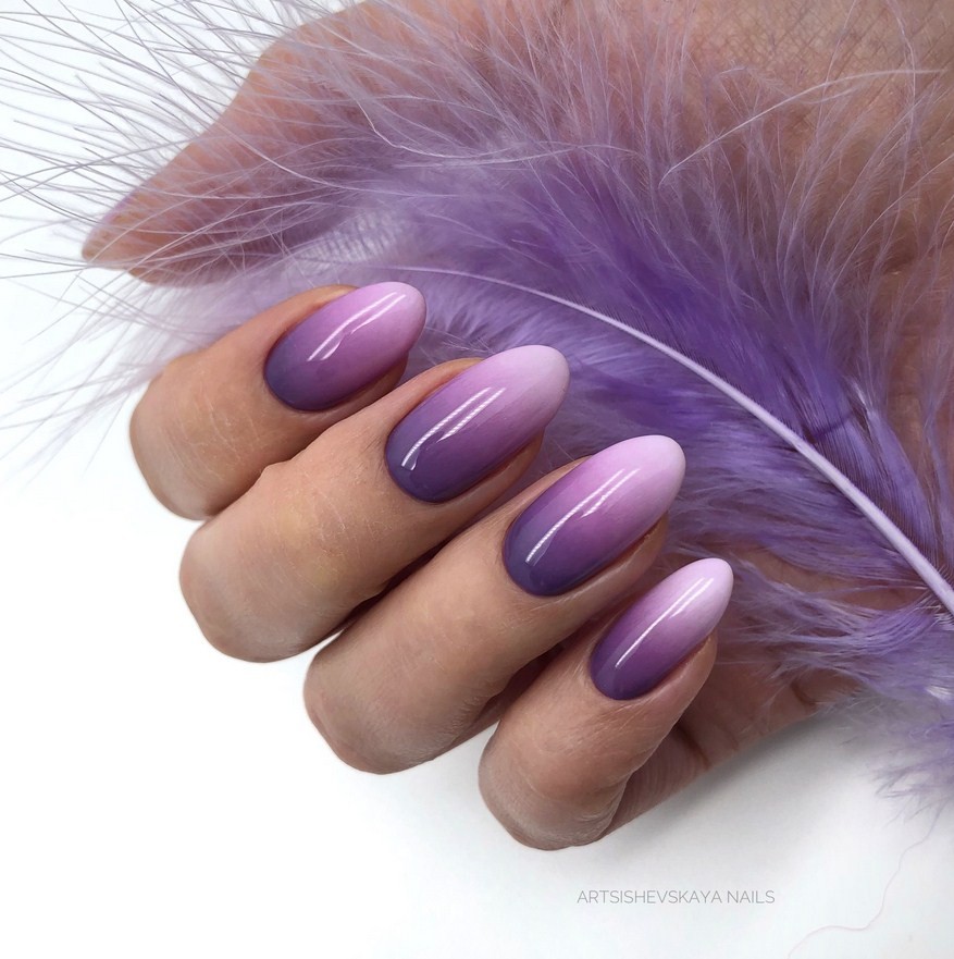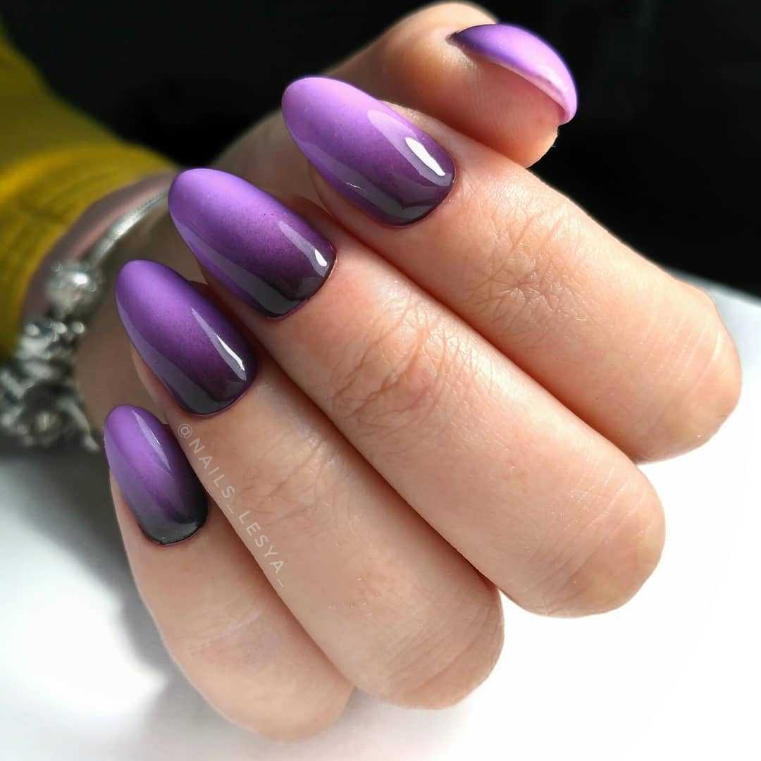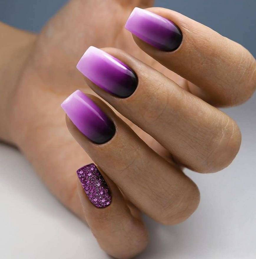 - фиолетовые переходы: используйте несколько оттенков фиолетового цвета и создайте градиентный эффект на каждом ногте или на нескольких;