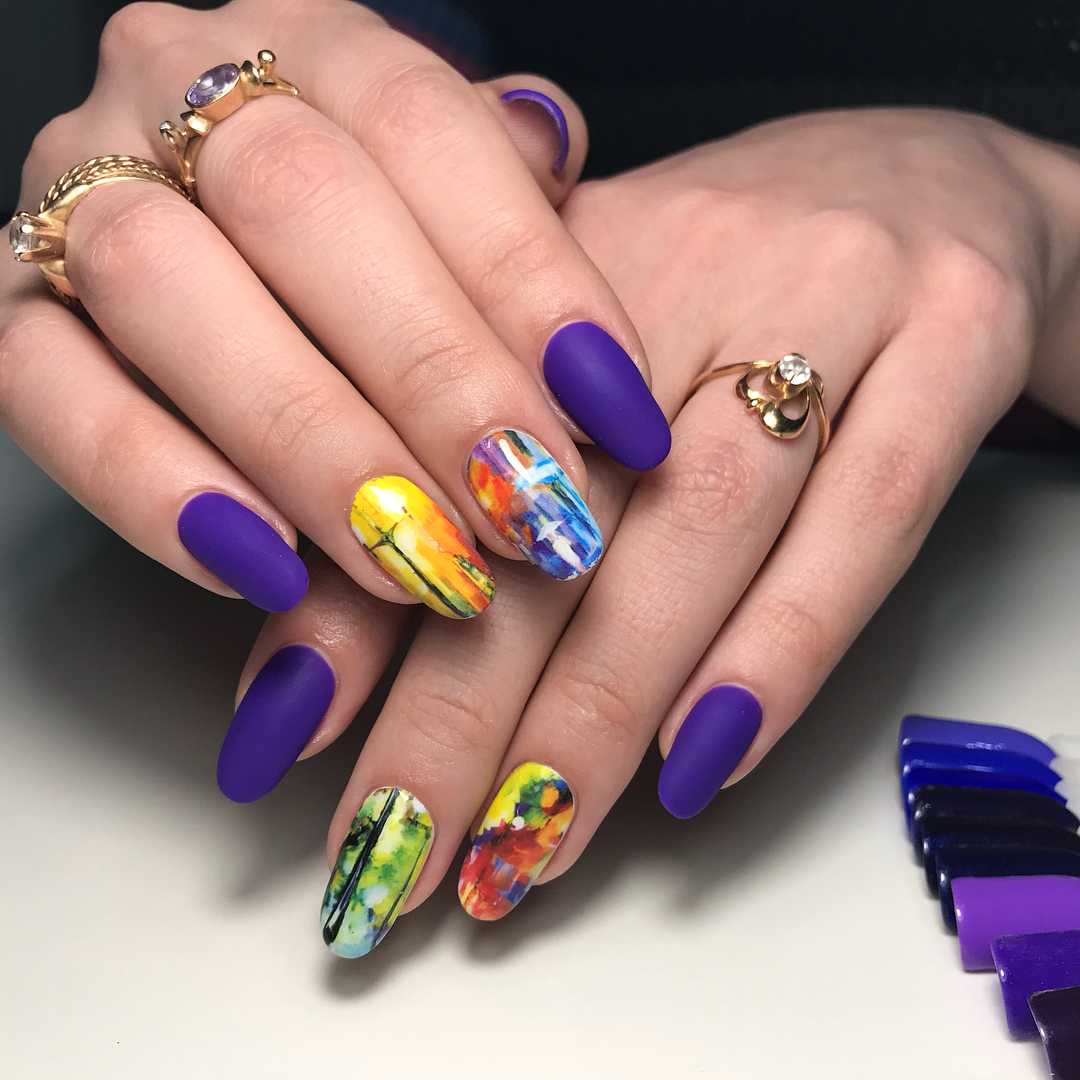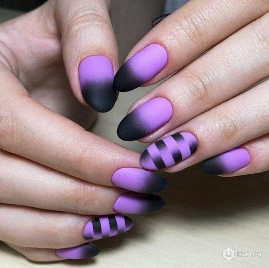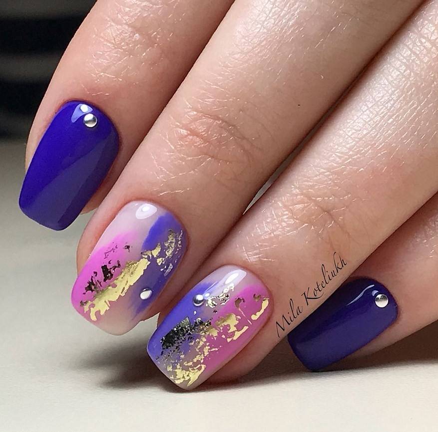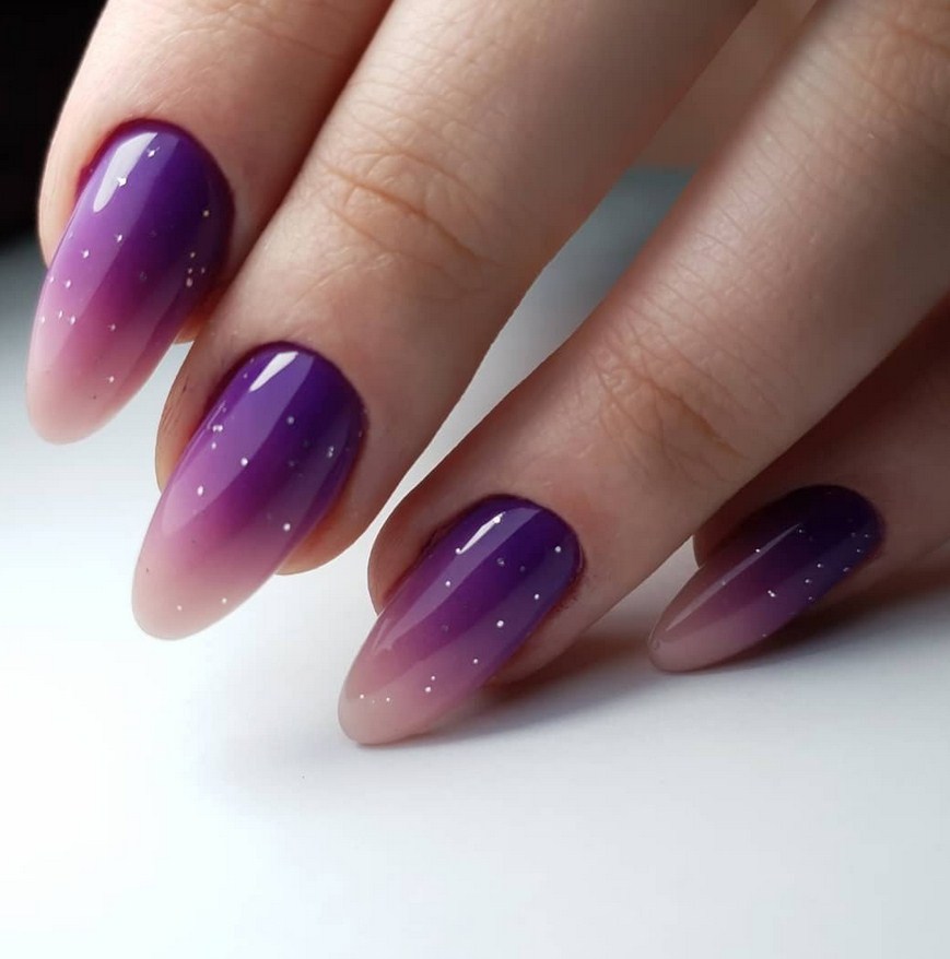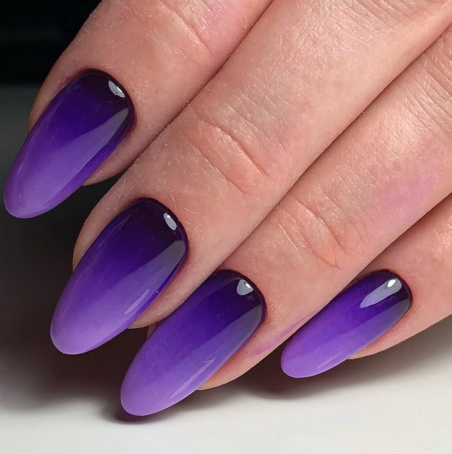 - фиолетовые переходы: используйте несколько оттенков фиолетового цвета и создайте градиентный эффект на каждом ногте или на нескольких;