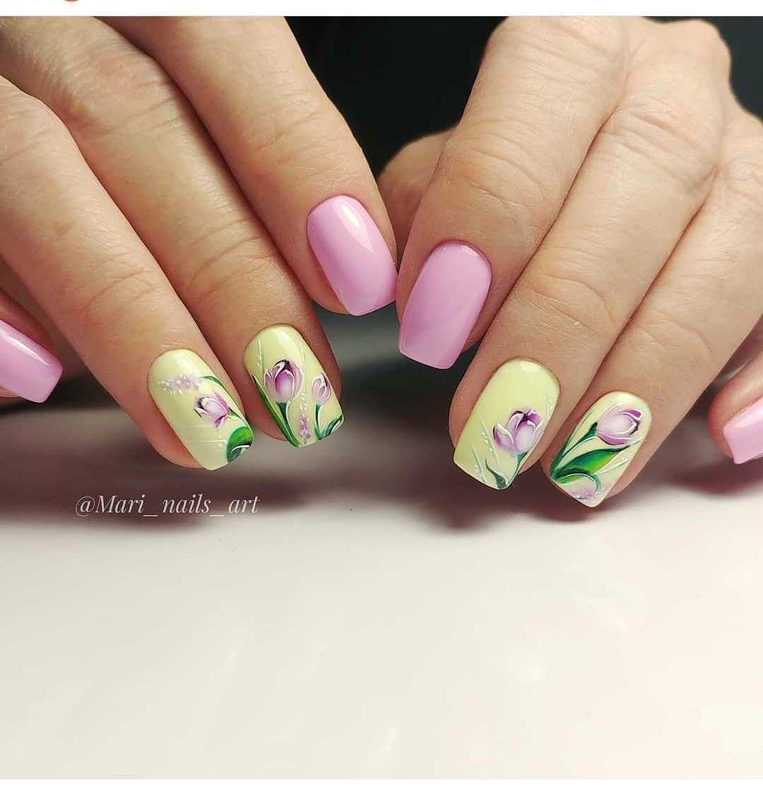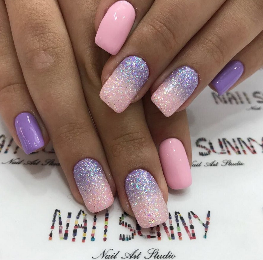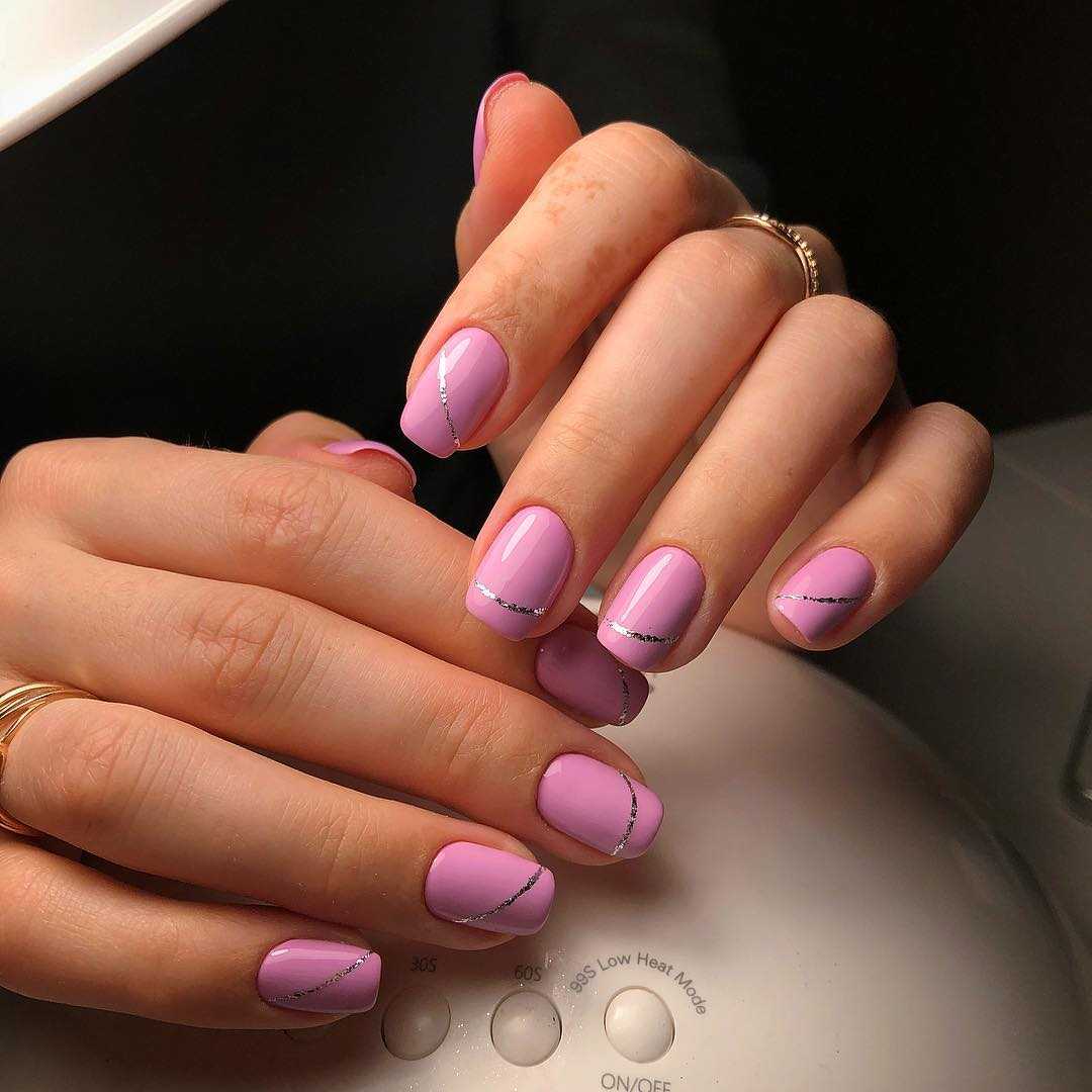 Сочетание сиреневого и розового цветов — это классическое сочетание для создания нежного и романтического образа. Вы можете сделать сиреневый маникюр с розовыми акцентами или наоборот — розовый маникюр с сиреневыми акцентами.