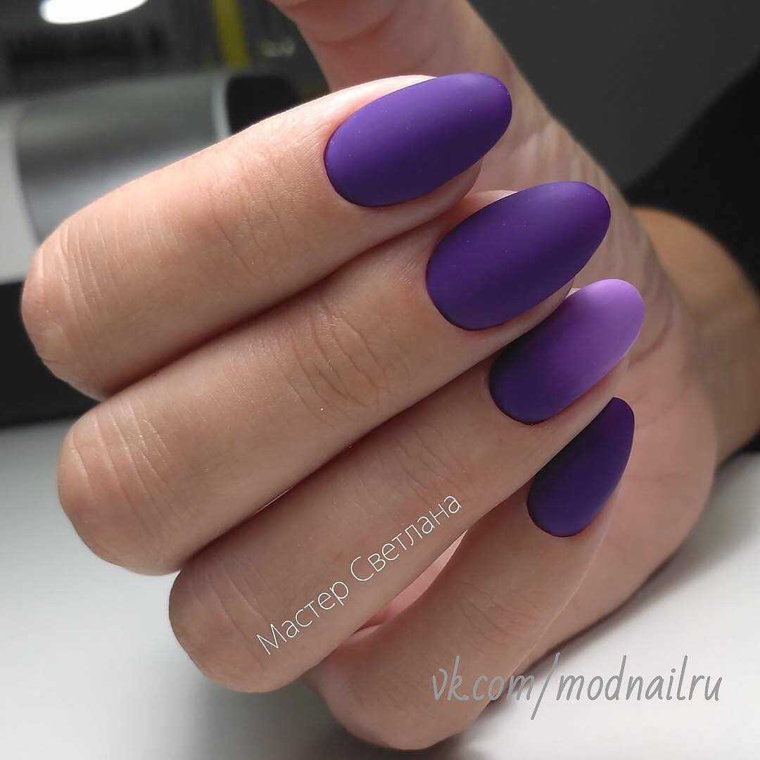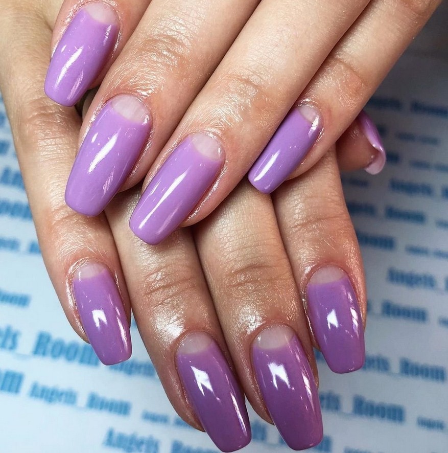 - фиолетовый градиент: создайте градиентный эффект, используя два или несколько оттенков фиолетового лака. Нанесите более темный оттенок на основу ногтя и переходите к светлым оттенкам к кончику ногтя;