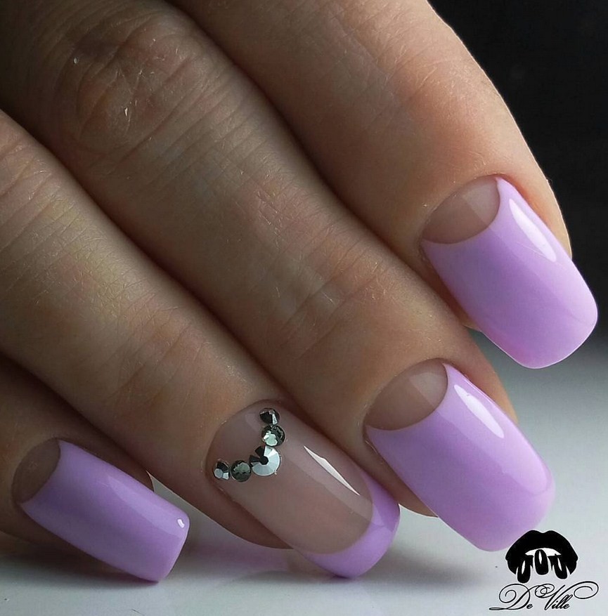 Использовать выделение лунок – любимая идея модниц, которую сложно назвать новинкой, ведь она не выходит из трендов уже несколько лет. Для разнообразия можно оформить лунки цветом сирени на прозрачном фоне, украсить их обкладыванием стразами.