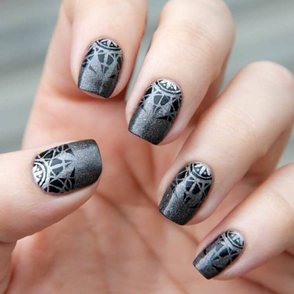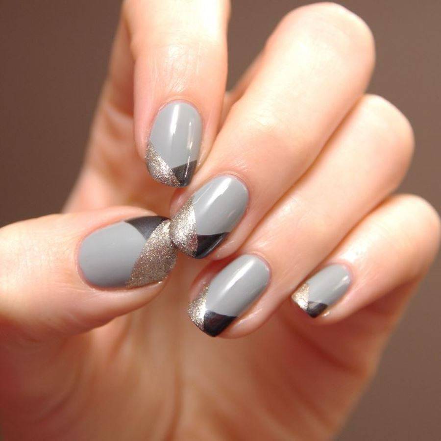 Самым популярным дизайном маникюра в осенний и зимний период считается твид. Он имеет общее сходство с вязаным маникюром. Оба они великолепно сочетаются с серыми оттенками лакового покрытия. Для выполнения твидового маникюра берутся черные, серые и белые лаки. Сам узор не имеет сложностей. В его основу входят простые линии различных размеров, которые наносят на кончик ноготка.
