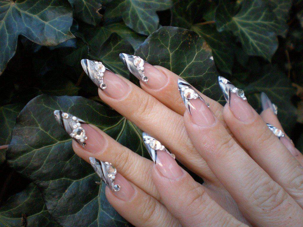 Стразы на длинных ногтях