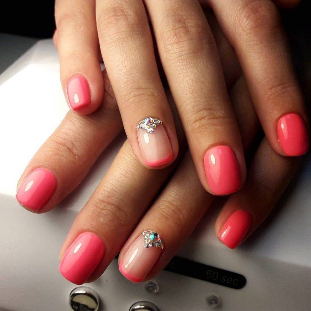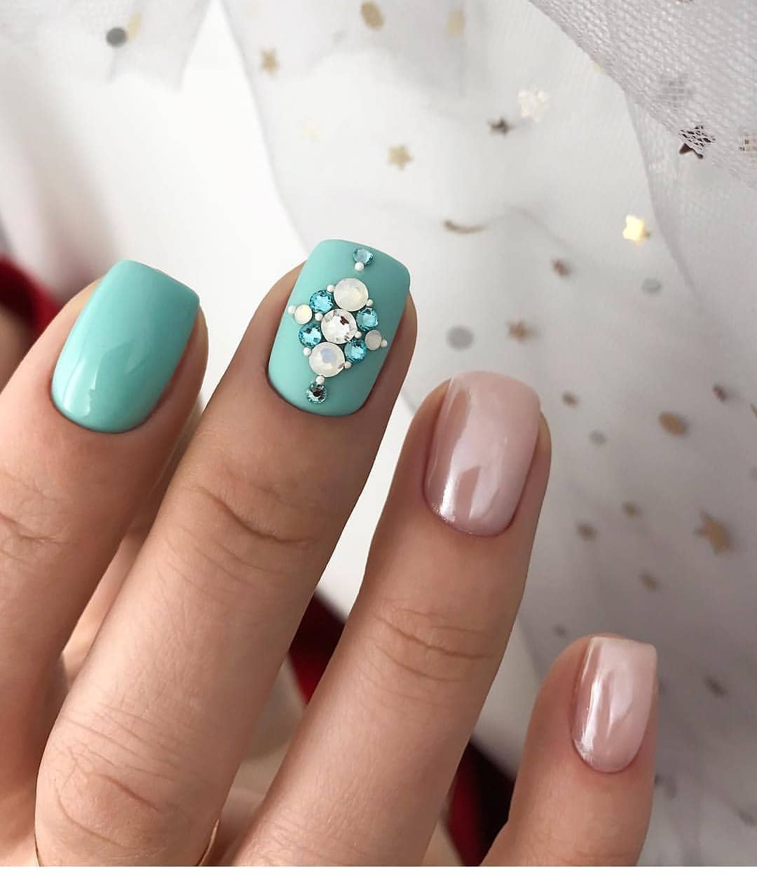 #3 Летний маникюр со стразами на коротких ногтях 2020