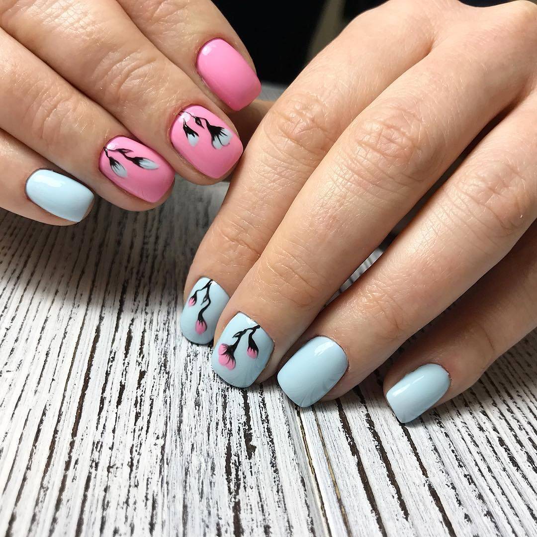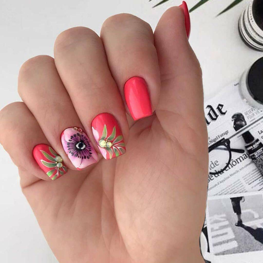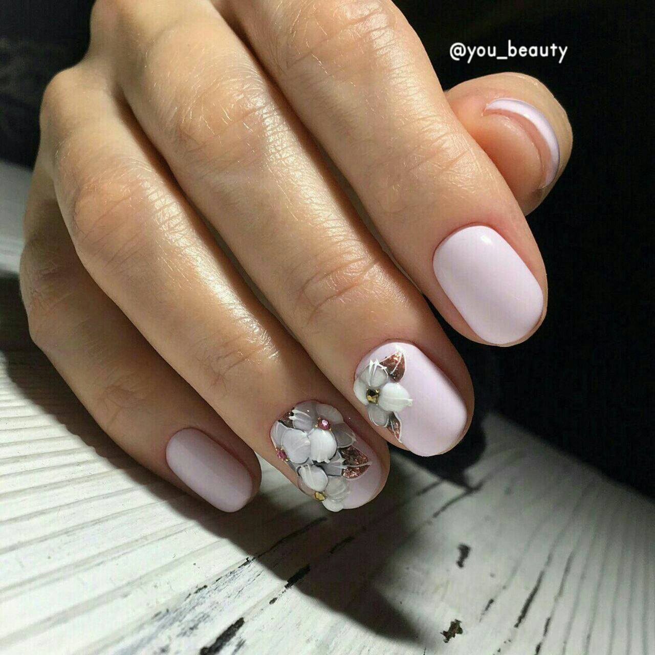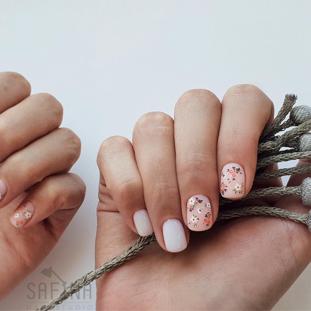 Короткая длина ногтей никогда не была помехой в создании стильного маникюра. Все чаще девушки украшают ноготки невероятно красивыми орнаментами, а также россыпью цветов. Несомненно, размер рисунка необходимо подбирать основываясь на длине ногтевой пластины. Поэтому не забывайте об этом нюансе. Также, выбирая рисунок, ориентируйтесь на образы, которые преобладают в вашем гардеробе. Если вы предпочитаете лаконичную классику, то цветы в стиле минимализм — лучшее, что можно придумать. Смелым, дерзким модницам больше подойдут крупные яркие цветы. Такой маникюр точно станет отражением вашего виденья прекрасного.