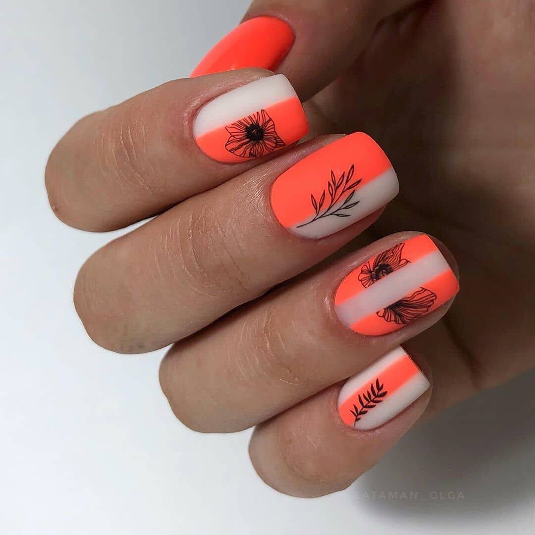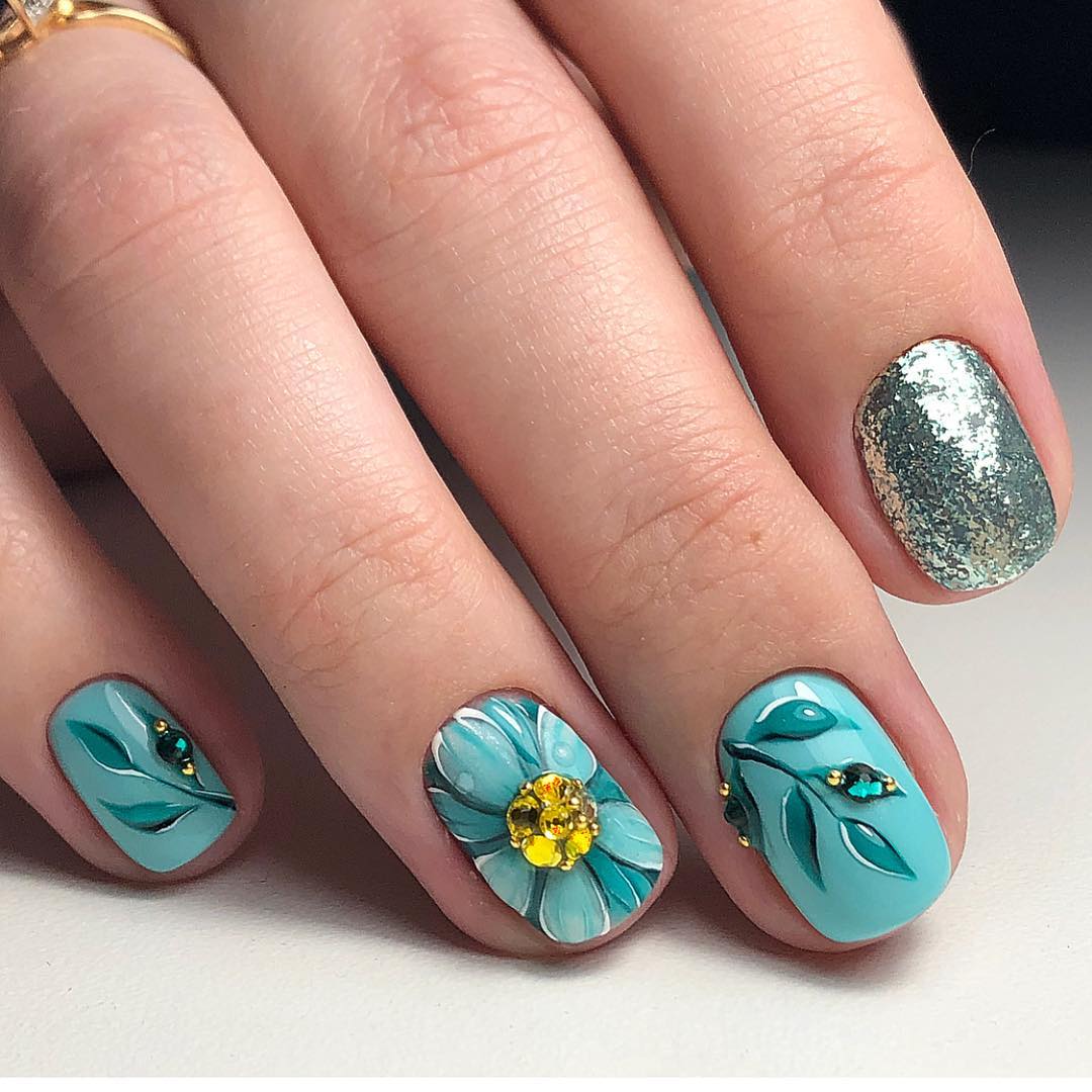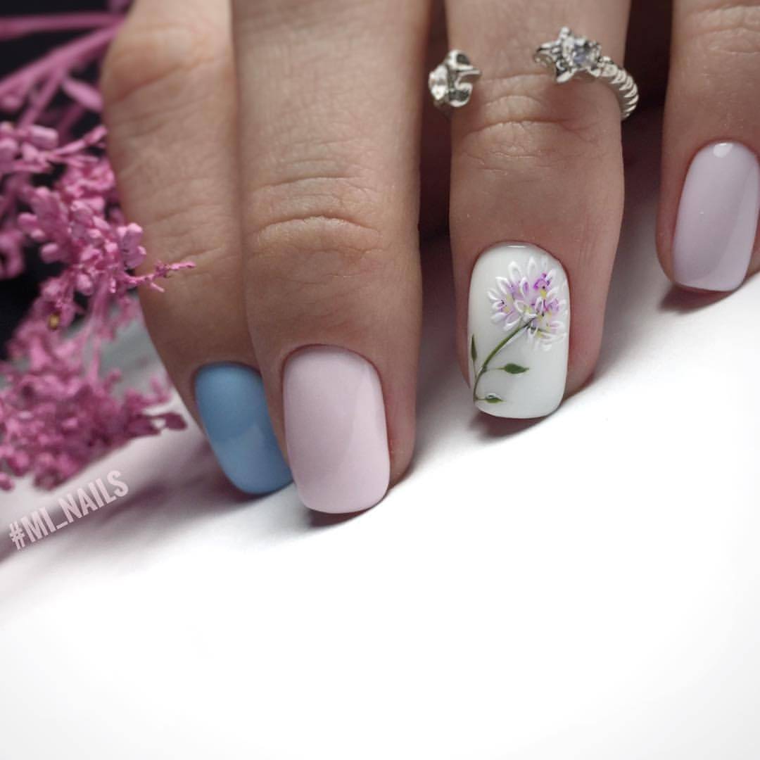 Короткая длина ногтей никогда не была помехой в создании стильного маникюра. Все чаще девушки украшают ноготки невероятно красивыми орнаментами, а также россыпью цветов. Несомненно, размер рисунка необходимо подбирать основываясь на длине ногтевой пластины. Поэтому не забывайте об этом нюансе. Также, выбирая рисунок, ориентируйтесь на образы, которые преобладают в вашем гардеробе. Если вы предпочитаете лаконичную классику, то цветы в стиле минимализм — лучшее, что можно придумать. Смелым, дерзким модницам больше подойдут крупные яркие цветы. Такой маникюр точно станет отражением вашего виденья прекрасного.