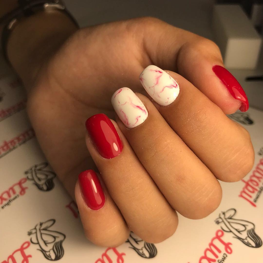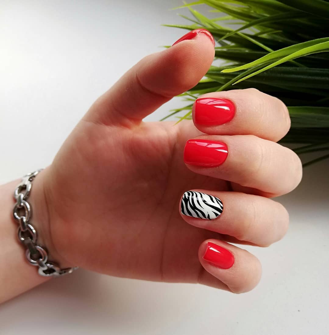 Красный. В летнем нейл-арте допустим будет любой оттенок красного. Это могут быть нежные коралловые тона, агрессивные алые или насыщенные бордовые. Что до оформления, помимо однотонного или лунного, который так любят делать многие модницы, уместным также будет и дизайн в минималистичном стиле. Не менее эффектно будет смотреться и нейл-арт в стиле колор-блок, выдержанный в красной гамме.