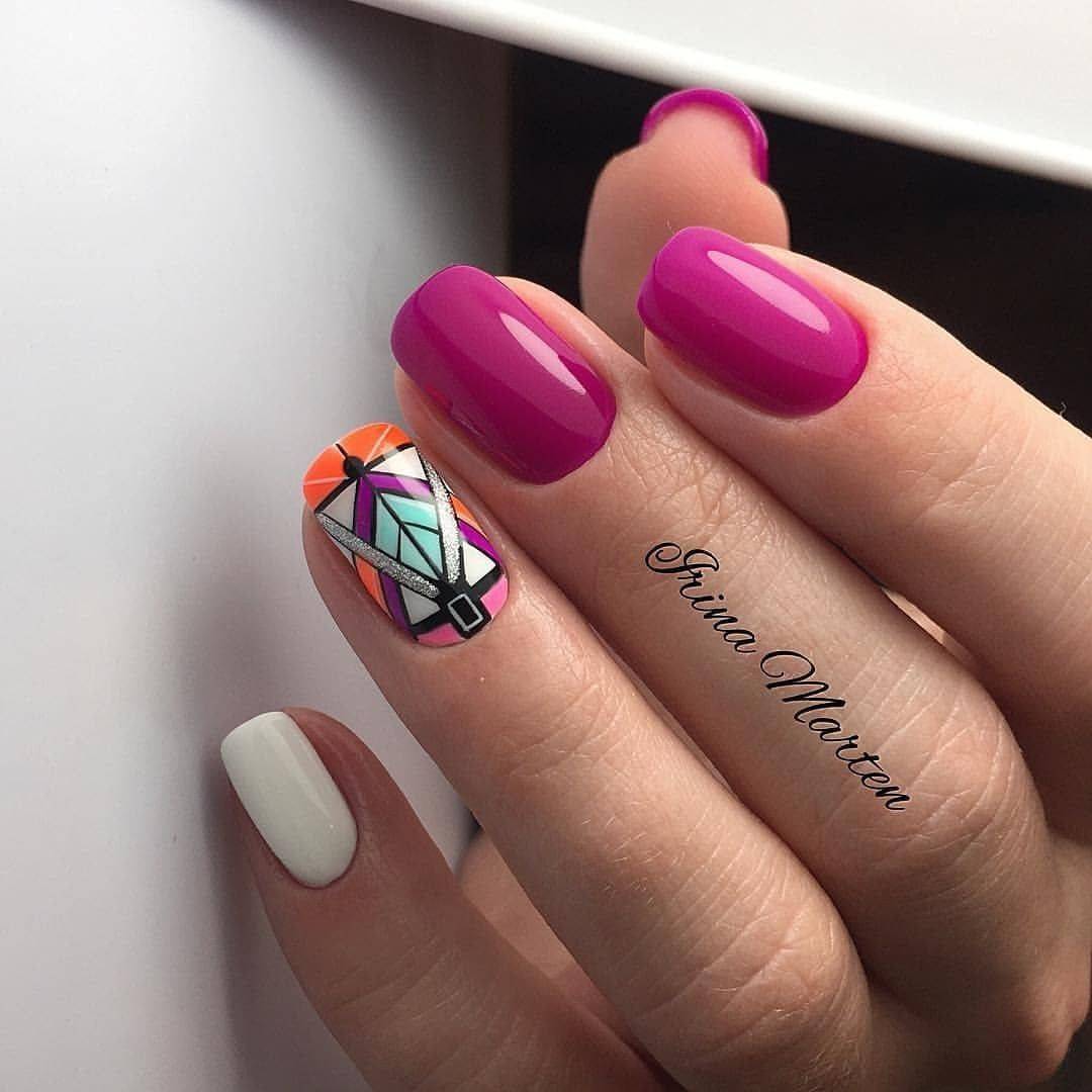 Буквально несколько лет назад геометрические рисунки взорвали мир нейл-арта. Его выбирают многие модницы по всему миру и это не удивительно. Все дело в том, что такой дизайн может быть совершенно разным. Нюдовое покрытие с тонкими линиями все также остается лаконичным и подходит для работы в офисе. Яркий цвет лака с более активным рисунком уже вызывает больше внимания и подходит для путешествий, отдыха на море. При желании в заданном стиле можно сделать вечернее оформление, которое непременно вызовет восторг. Поэтому попробуйте сделать хотя бы один из представленных вариантов летом 2020.