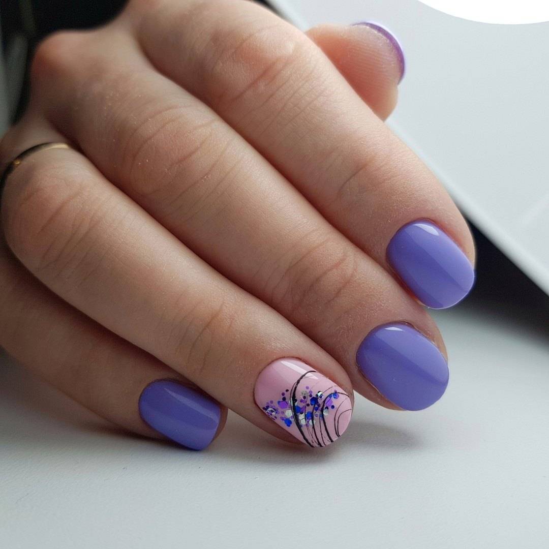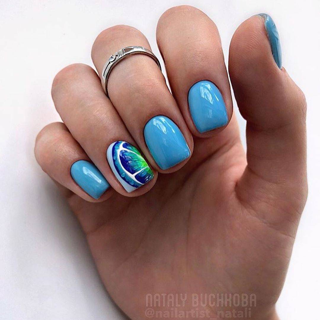 Синий. Красивый цвет, который идеально подойдет для оформления маникюра на коротких пластинах. Как и в случае с зеленым, синим можно просто покрыть ноготки. Также данная палитра может стать отличной основой и для более сложных дизайнов.