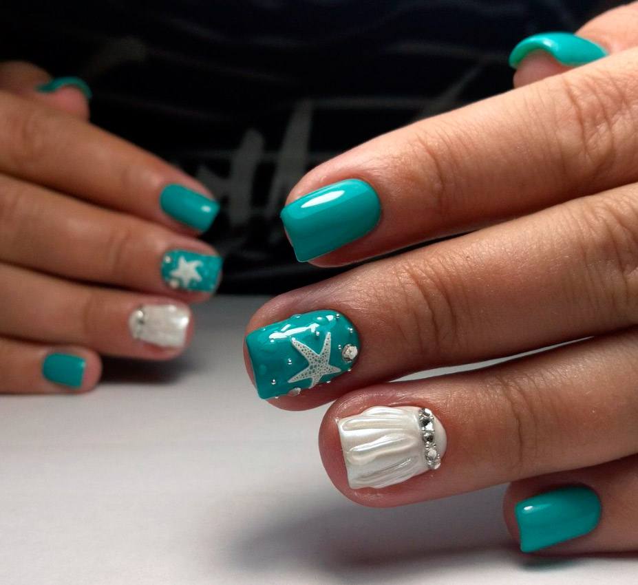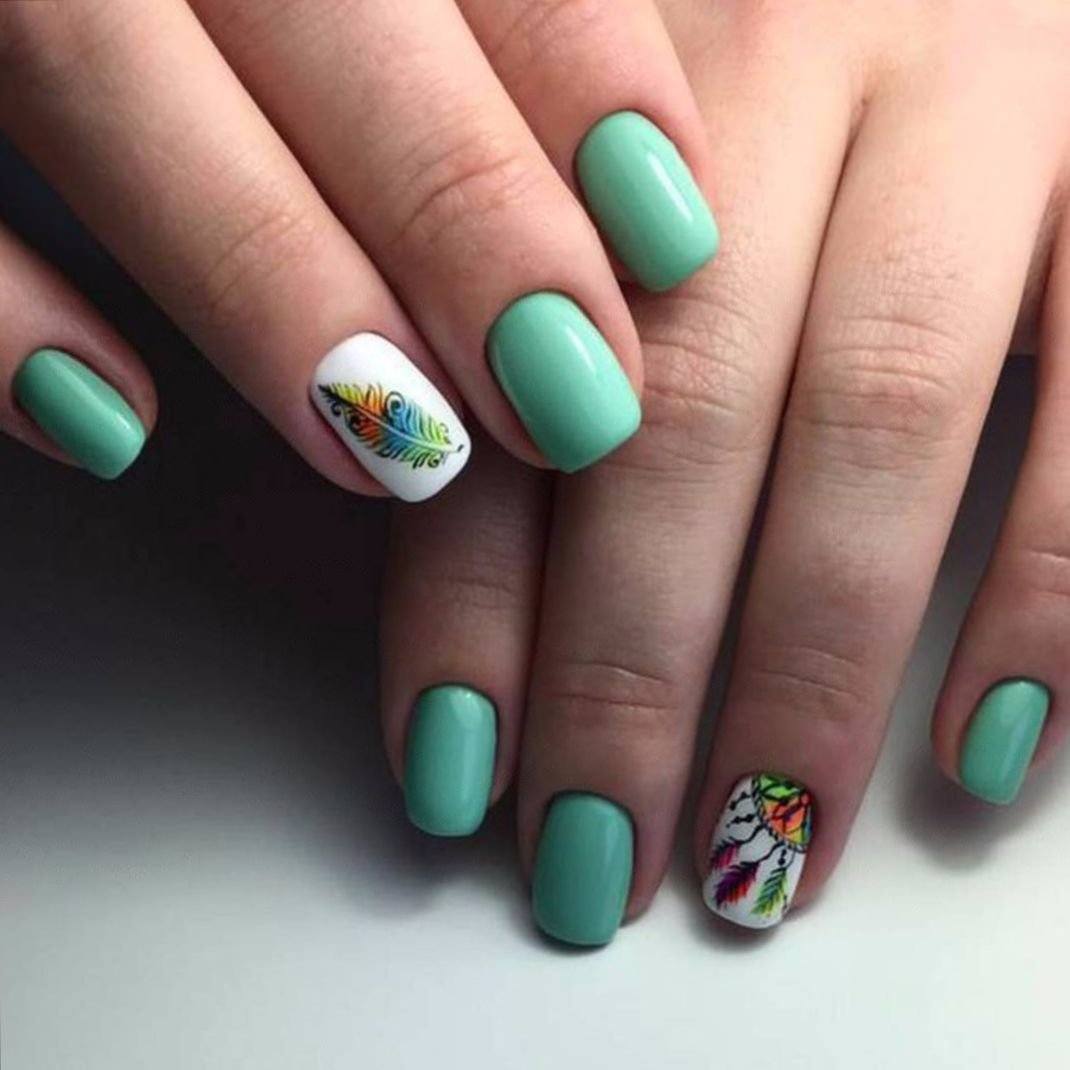 Зеленый. Желающие создать модный летний маникюр свой выбор должны остановить на благородной зеленой палитре. Ведь выглядит она на ногтях всегда очень броско и изысканно. Дизайн вы можете выбрать любой. В данном случае уместным будет, как яркий однотонный нейл-арт, так и загадочный градиент или классический френч.